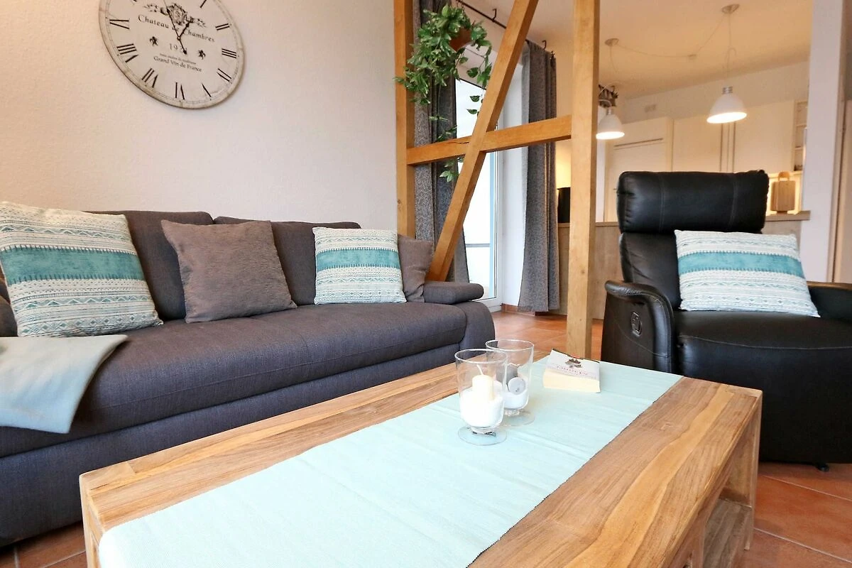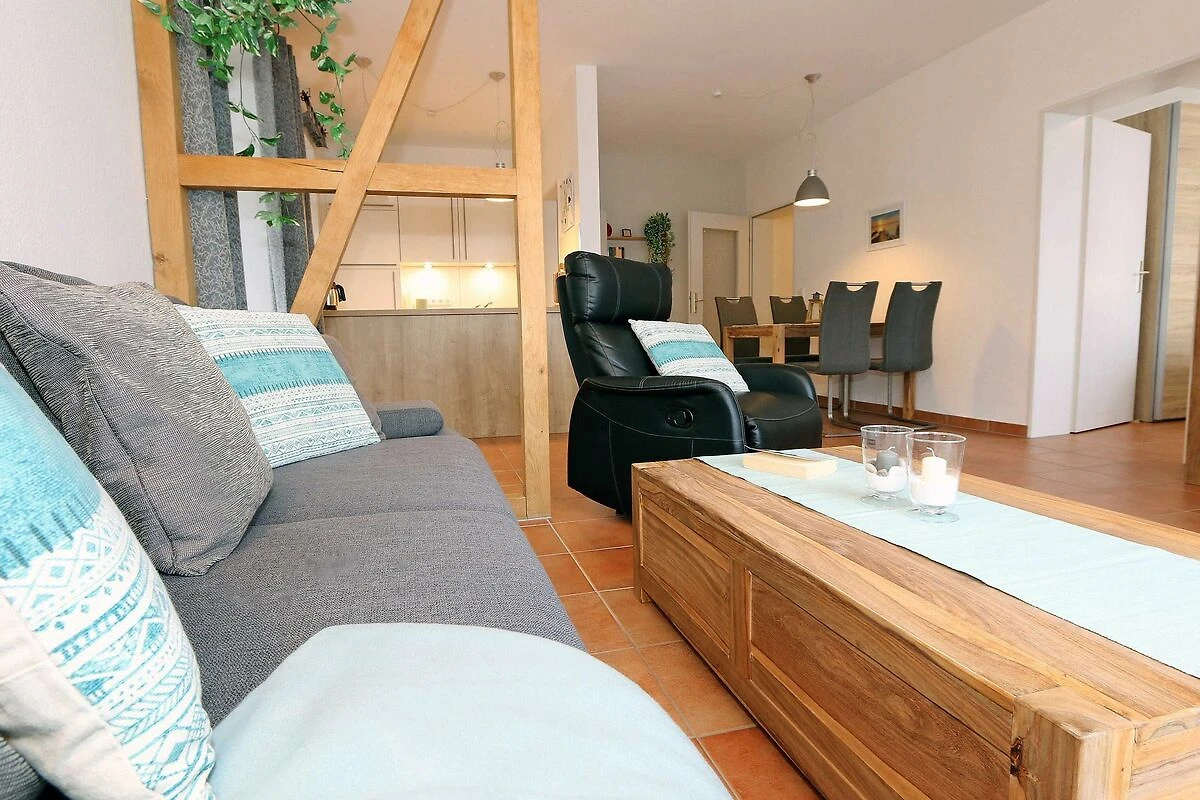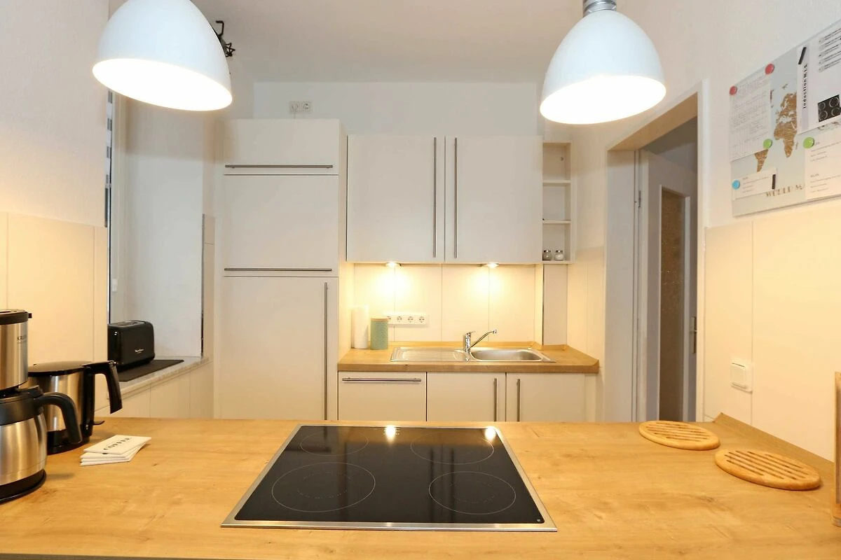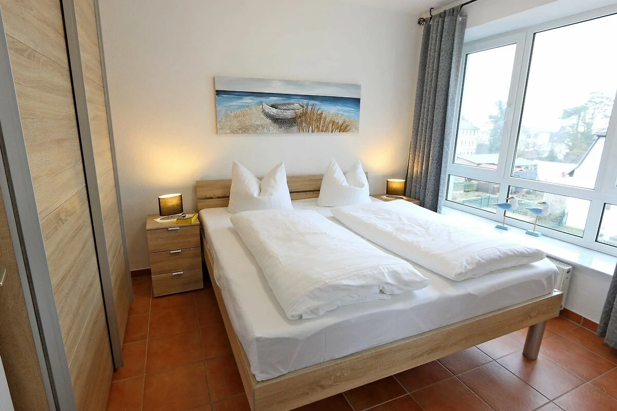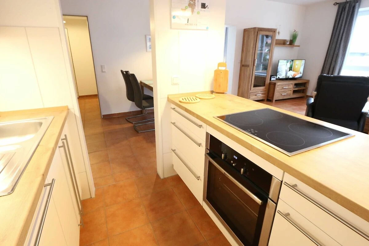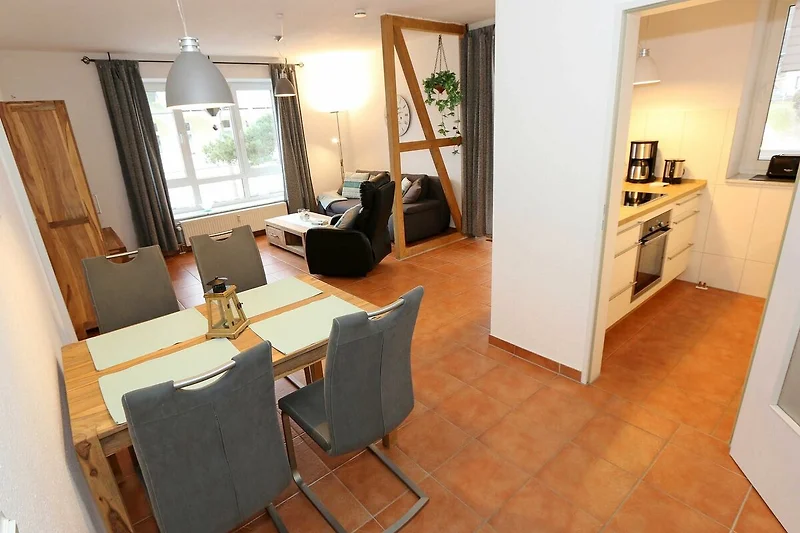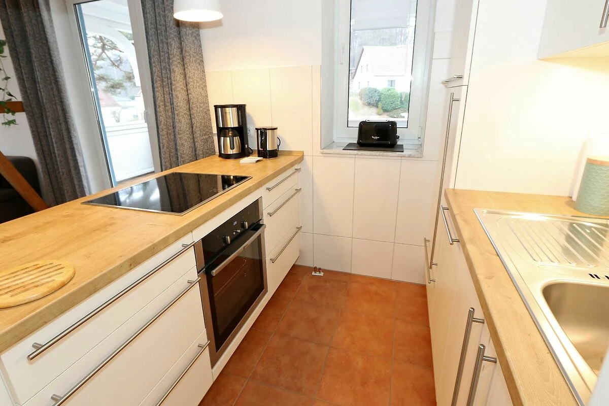 Die ausgestattete 2-Raum-Nichtraucher-Wohnung im 1. OG des Haus Holstein liegt am erweiterten Kurpark, direkt am Friedensberg mit hervorragender Wohnqualität und verfügt über ca. 63 qm Wohnfläche. Der geräumige Flur ist mit einer Garderobe sowie einem integrierten Abstellraum ausgestattet. Der 13 qm grosse und überdachte Balkon (Süden) mit Komfort-Bestuhlung und Sonnenliege ist vom Wohnbereich aus begehbar. Die Wohnung ist für 2 bis max. 4 Erwachsene ausgestattet und besteht aus einem Wohnbereich mit einer Couch (Aufbettung für 3./4. Person, 1,50 m x 2,00 m), massivem Couchtisch, einem Funktions-Sessel, einer Stehlampe sowie einer Vitrine. Der technische Bereich wird durch einen LED-TV, einen DVD-Player, einer Mini-Stereo-Anlage mit Bluetooth und USB-Anschluss sowie Internet (WLAN) abgerundet. Der Internetzugang (WLAN) ist für Sie inklusive. Die grosszügige Essecke umfasst einen massiven Vollholz-Tisch und vier dazugehörige Stühle. Die angrenzende und offene Küchenzeile bietet Ihnen einen Kühlschrank mit Gefrierfach, einen Backofen mit 4 Zonen Induktionskochfeld, einen Geschirrspüler, einer Mikrowelle, einer Kaffeemaschine, einen Toaster, einen Eierkocher, einen Handmixer, einen Wasserkocher sowie viele kleine Küchenutensilien. Im Schlafzimmer befindet sich ein Doppelbett (1,80 m x 2,00 m) mit einer Komforthöhe über 60 cm, Kaltschaum-Wendematratzen H2/H3, zwei Nachttischablagen und einen grossen Kleiderschrank. Ein grosser Ganzkörperspiegel rundet den Raum ab. Das innenliegende Bad ist mit einem Waschplatz mit beleuchtetem Spiegel, einer Dusche mit flachem Einstieg, Fön, WC, Handtuchhalter sowie einer Waschmaschine versehen. Im Abstellraum finden Sie kleine Helfer wie einen Staubsauger, ein Bügeleisen mit Bügelbrett und einen Wäscheständer für den Balkon. Alle Räumlichkeiten sind in der Wohnung gefliest und haben jeweils ein Insektenschutzgitter. Haustiere sind nicht erlaubt. Ein überdachter PKW-Stellplatz Nr. 12 (max. 2 m Höhe) befindet sich direkt unterm Haus. Im Gemeinschaftskeller stehen Ihnen eine Münzwaschmaschine und ein Münztrockner zur Verfügung. Abstellmöglichkeiten für Fahrräder sind gegeben. Die Erstausstattung eines Wäschepaketes (komplette Bettwäsche, 1 Duschhandtuch, 1 kleines Handtuch) können Sie bis 14 Tage vor Anreise gegen einen Aufpreis dazu buchen oder durch eigene ergänzen. Ab 2 gebuchten Paketen erhalten Sie einmalig 1 Geschirrhandtuch und 1 Duschvorleger hinzu.