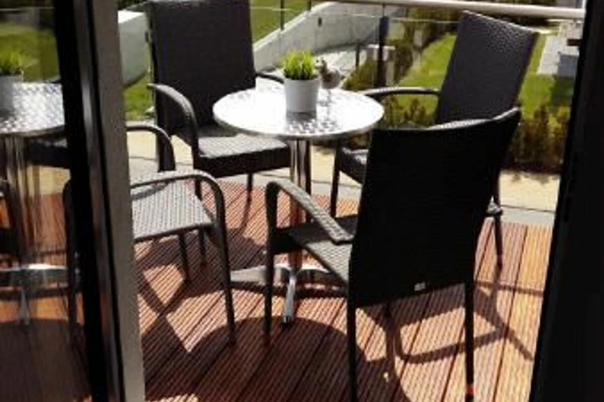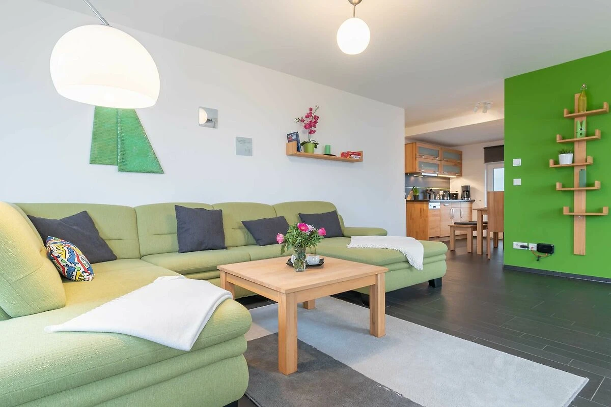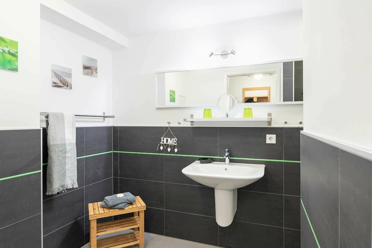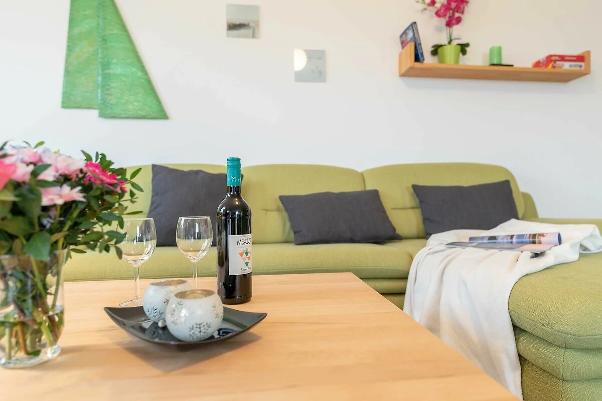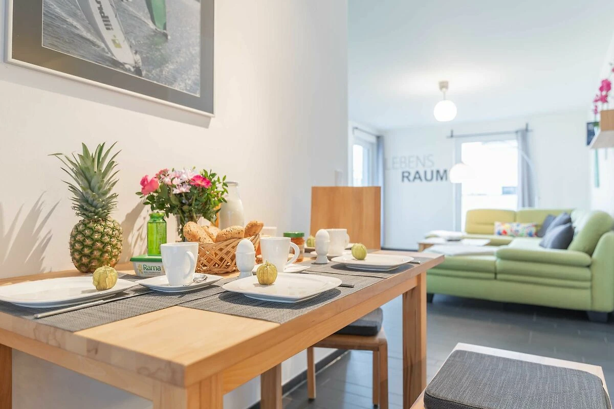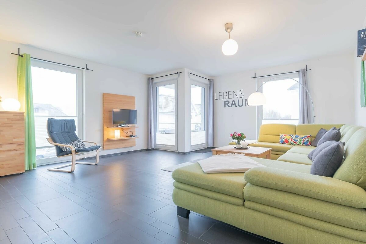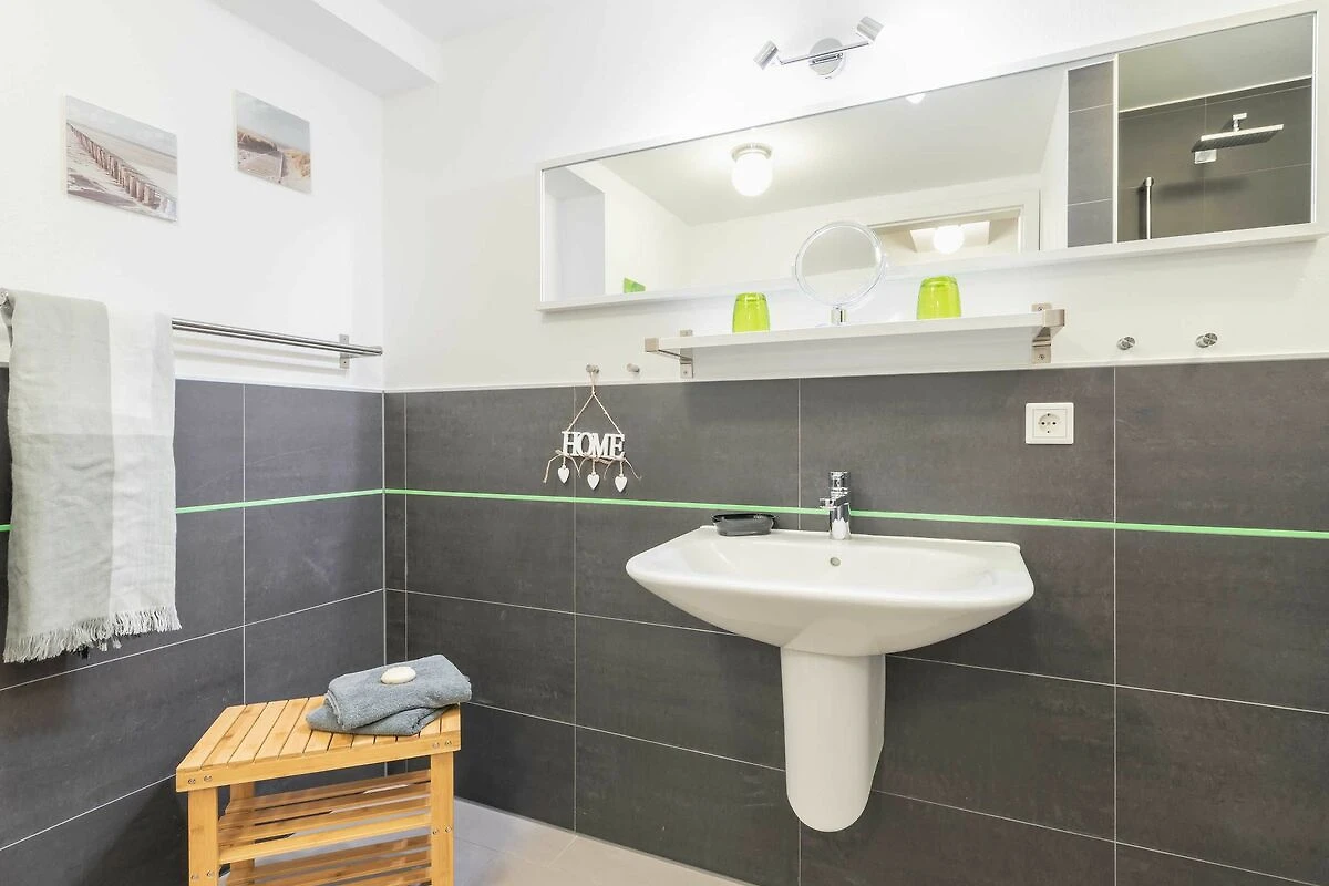 Zur Wohnung gehören ein Ostbalkon mit Meerblick und ein kostenfreier PKW-Stellplatz in der Tiefgarage. Bitte beachten Sie die Durchfahrtshöhe von max. 1,90 m. Von der Tiefgarage aus können Sie mit dem Fahrstuhl bequem zur Wohnung fahren. Am Eingang des Objekts befinden sich zudem Fahrradständer. Die modern eingerichtete Ferienwohnung bietet Ihnen ein grosses Wohnzimmer mit Koch- und Essbereich und eine bequeme Schlafcouch für zwei weitere Personen. Bunte Unterhaltung bietet ein LCD-Satelliten-TV mit Radio und DVD-Spieler. Das grosse Schlafzimmer ist mit einem Kleiderschrank und einem komfortablen Doppelbett (durchgängige Matratze) eingerichtet. In der kompletten Wohnung ist eine Fussbodenheizung installiert. Vom Wohnbereich aus gelangen Sie nach draussen auf den Balkon. Im Bad befinden sich eine ebenerdige Dusche, ein WC und ein Waschtisch mit grossem Spiegel. Ein Föhn ist vorhanden. Des Weiteren finden Sie eine komplett eingerichtete Einbauküche mit Cerankochfeld, Kühlschrank mit Gefrierfach, Geschirrspüler, Wasserkocher, Kaffeemaschine, Toaster und eine Mikrowelle mit Backfunktion.