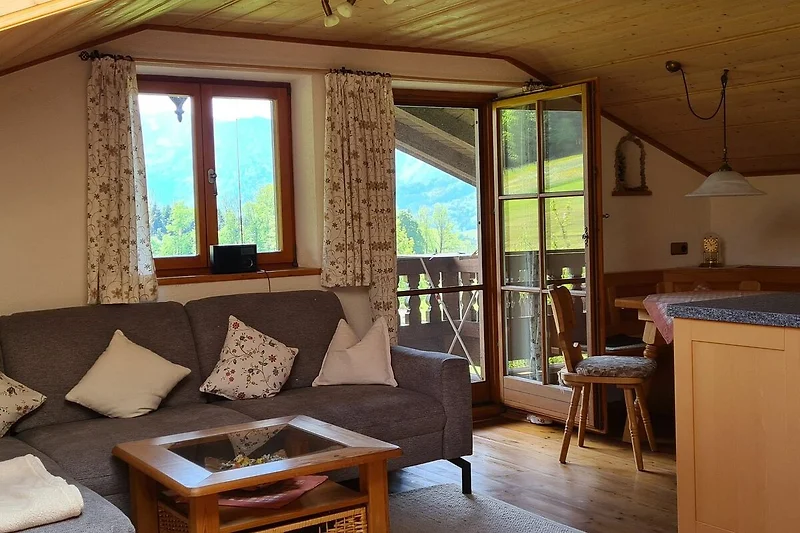 Südbalkon mit Bergblick und Sitzgelegenheit stehen für Sie bereit.