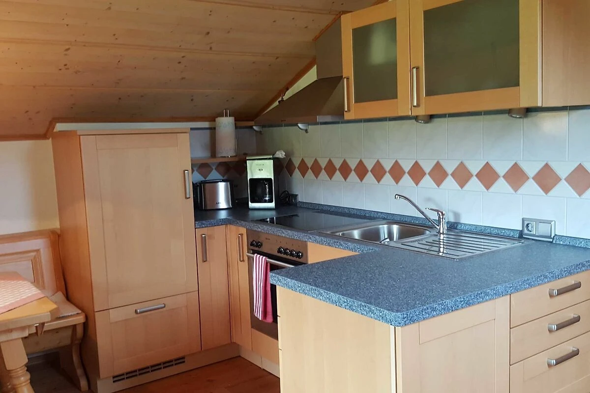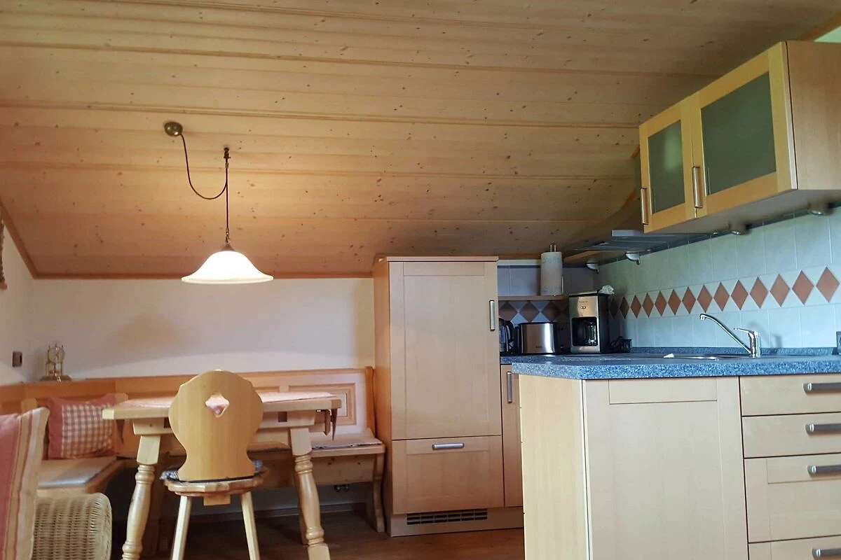 Eine komplett eingerichtete Wohnküche mit liebevollen Details laden ein zum Entspannen.