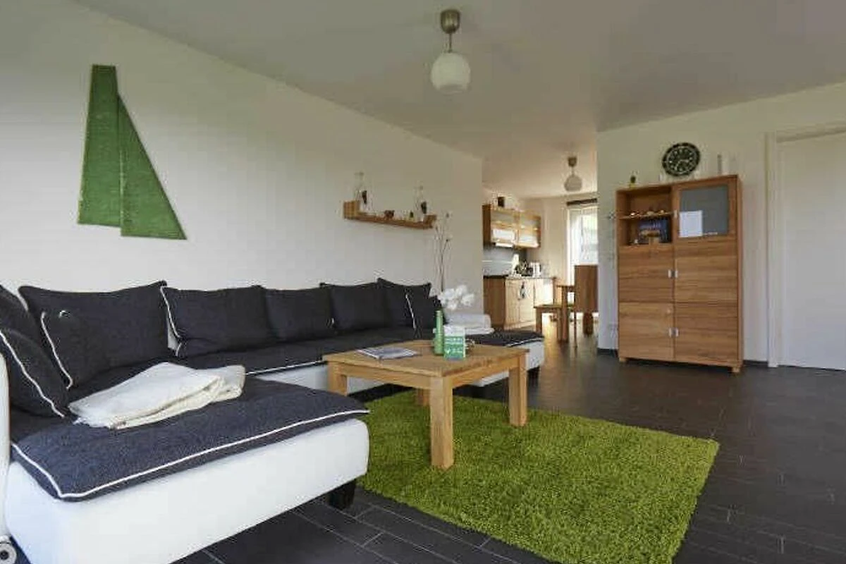 Die Wohnung bietet Ihnen ein grosses Wohnzimmer mit einer bequemen Schlafcouch für zwei Personen und ein Schlafzimmer mit einem komfortablen Bett. In der kompletten Wohnung ist eine Fussbodenheizung installiert und von jedem Zimmer aus können Sie nach draussen gehen. Des Weiteren befindet sich in der offenen Küche eine komplett eingerichtete Einbauküche mit Backofen, Ceranfeld, Kühlschrank ****, Geschirrspüler, Mikrowelle, Wasserkocher, Toaster, Kaffemaschine sowie eine Tassimo-Maschine. Das Bad mit Tageslicht bietet Ihnen eine Dusche, ein WC, einen Waschtisch mit grossem Spiegel und einen Föhn. Die Ferienwohnung ist stilvoll eingerichtet, unter anderem auch mit einem LED TV, einer Playstation (PS3) und einer Stereoanlage.