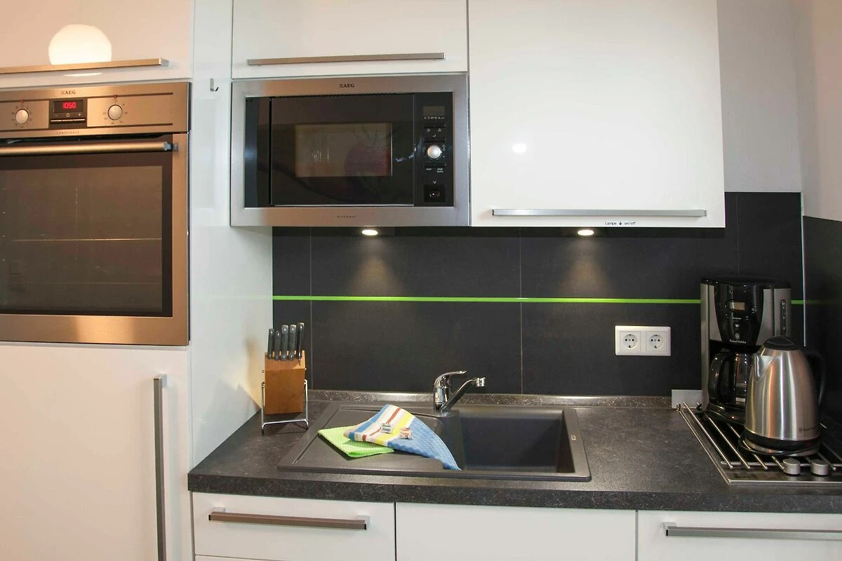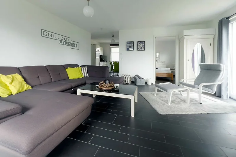 Das Wohnzimmer empfängt Sie mit einer gemütlichen Chillout Lounge inklusive einem LED-TV, einer Playstation (PS3) und einer Stereoanlage. Auf der Schlafcouch finden bequem zwei Personen Platz. Im Schlafzimmer sorgt ein komfortables Doppelbett für süsse Träume. In der kompletten Wohnung ist eine Fussbodenheizung installiert und von jedem Zimmer aus gelangen Sie nach draussen auf die Terrasse. In der offenen Küche befindet sich eine komplett eingerichtete Einbauküche mit Backofen, Ceranfeld, Kühlschrank inklusive Gefrierfach, Geschirrspüler, Mikrowelle, Wasserkocher, Kaffeemaschine und Toaster. Das Bad mit Tageslicht bietet Ihnen eine Dusche, einen Föhn, einen Waschtisch mit grossem Spiegel, einen separaten Kosmetikspiegel sowie mehrere Abstellmöglichkeiten.
