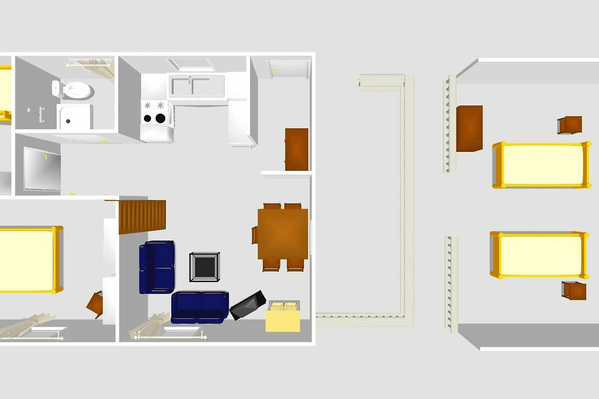 Ihr Ferienhaus liegt zwischen viel Grün und kleinen Teichen in einer parkartigen Landschaft. Die Ferienhäuser gibt es in unterschiedlichen Grössen und mit unterschiedlicher Ausstattung: von der einfachen Unterkunft im Chaletstil bis zum grossen, rustikalen Blockhaus. Je nach Typ sind sie zwischen 35 qm und 70 qm gross und verfügen über bis zu drei Schlafzimmer für bis zu acht Personen.