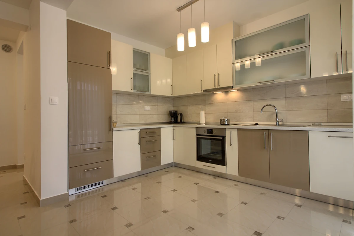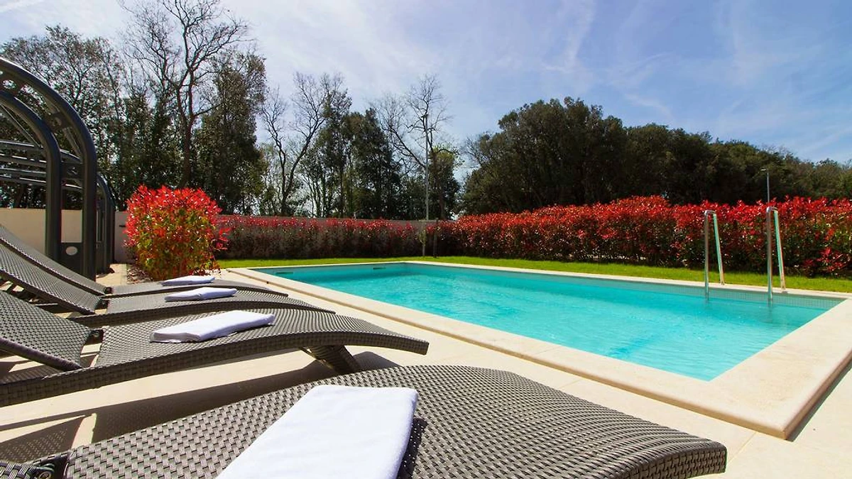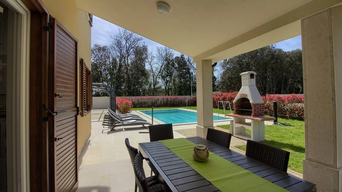 Das Komplex von vier gleichen Villen ist nur 200m von Meer. Wir bieten zwei Villen die Platz bis zu 20 Personen unternhemen kann, bietet 8 schön möblierte Schlafzimmer von denen zwei Schlafzimmer mit zwei Einzelbetten eingerichtet sind und die anderen Schlafzimmer bieten ein bequemes Doppelbett. Jedes Schlafzimmer hat ein Bädezimmer mit Dusche, Toilete und Waschbecken. Die zwei voll ausgestattenen Küchen mit Essbereichen haben kompllet alles was Sie für das Kochen brauchen und sogar einen direkten Ausgang zum Pool. Sie können im grünen Garten mit privatem Pool entspannen, liegen auf Sonnenliegen und genießen Sie die Sonne oder Sie können auch Spezialitäten auf Holzkohlengrill für Ihre Freunde vorzubereiten. Die Villen sind komplett klimatisiert,verfügen auch Wi-fi und freies Parkplatz. Wenn Sie zum Strand gehen möchten nehmen Sie einfach Ihr Handtuch und in wenigen Minuten zu Fuß sind Sie am Strand, aber auch zu Fuß erreichbar gibt es erstaunliche Restaurants.