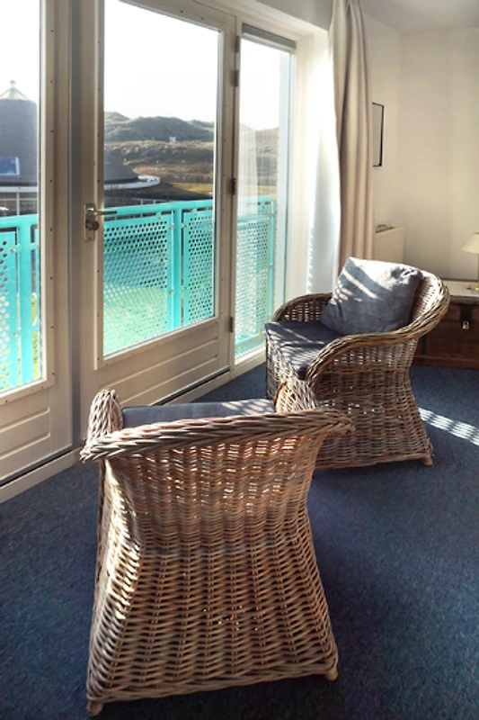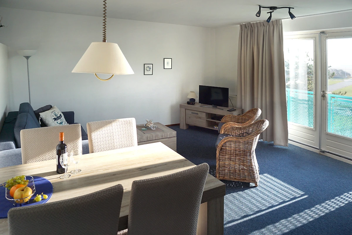 Die Ferienwohnung hat ein Wohnzimmer mit einem Französischen Balkon Richtung Süden,