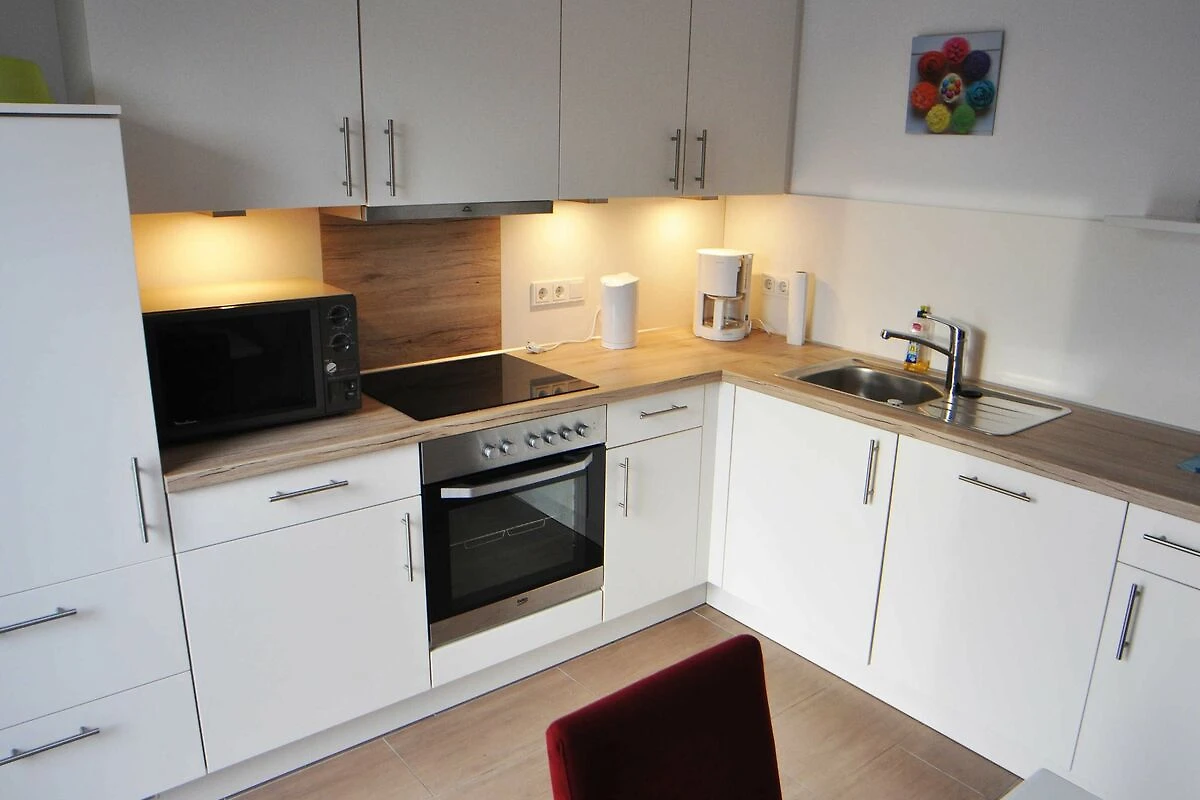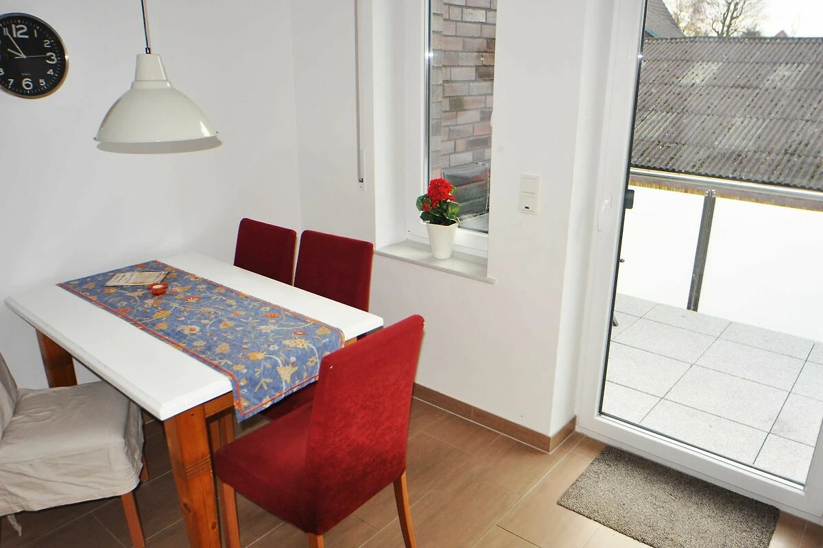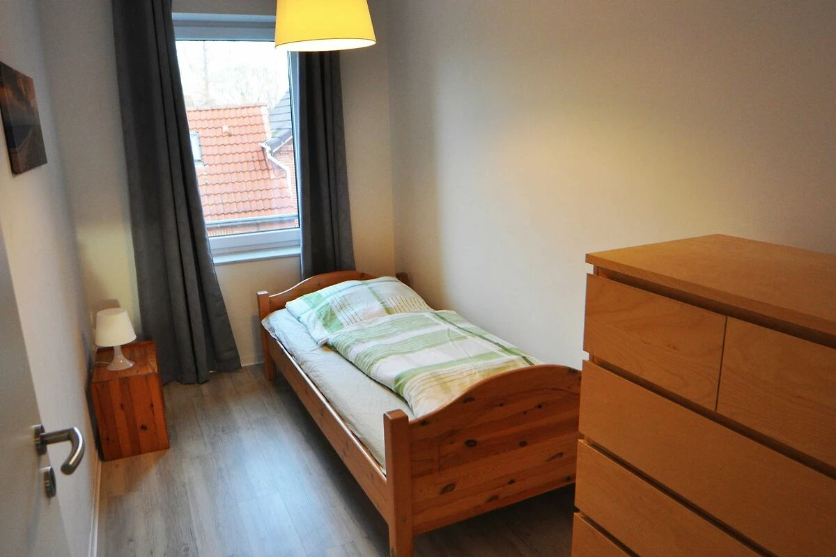Der Neubau befindet sich im Ortsteil Oldersum und verügt über fünf modern eingerichtete Ferienwohnungen. Im Erdgeschoss befindet sich Wohnung 2 für zwei Personen mit Terrasse (ca. 60 m² gross). Im Obergeschoss befinden sich Wohnungen 3 und 4, jeweils für drei bis maximal vier Personen mit 70 m² und Balkon. Im Dachgeschoss befinden sich Wohnungen 5 und 6, auch jeweils für drei bis maximal vier Personen mit je ca. 46 m². Zustellbetten und Kinderbetten stehen bei Bedarf auf Anfrage zur Verfügung. Parkplätze sind auf dem Grundstück vorhanden. Es gibt eine Fahrradunterstellmöglichkeit in einem Fahrradschuppen. Der Schuppen ist abschliessbar.