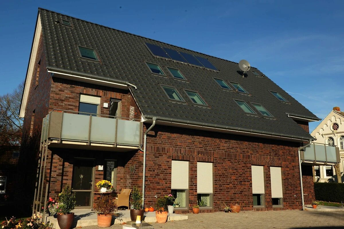 Der Neubau befindet sich im Ortsteil Oldersum und verügt über fünf modern eingerichtete Ferienwohnungen. Im Erdgeschoss befindet sich Wohnung 2 für zwei Personen mit Terrasse (ca. 60 m² gross). Im Obergeschoss befinden sich Wohnungen 3 und 4, jeweils für drei bis maximal vier Personen mit 70 m² und Balkon. Im Dachgeschoss befinden sich Wohnungen 5 und 6, auch jeweils für drei bis maximal vier Personen mit je ca. 46 m². Zustellbetten und Kinderbetten stehen bei Bedarf auf Anfrage zur Verfügung. Parkplätze sind auf dem Grundstück vorhanden. Es gibt eine Fahrradunterstellmöglichkeit in einem Fahrradschuppen. Der Schuppen ist abschliessbar.