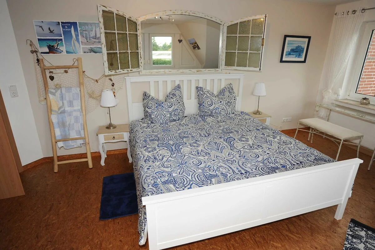 Die Ferienwohnung liegt in einer ruhigen Lage direkt am Naturschutzgebiet im Ortsteil Veenhusen. Bademöglichkeiten befinden sich in wenigen Gehminuten.