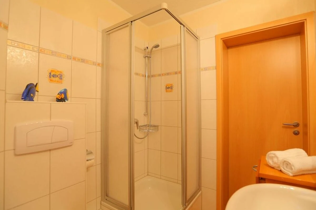 Das Bad finden Sie ebenfalls im unteren Bereich der Wohnung. Dieses ist mit Dusche und WC ausgestattet.