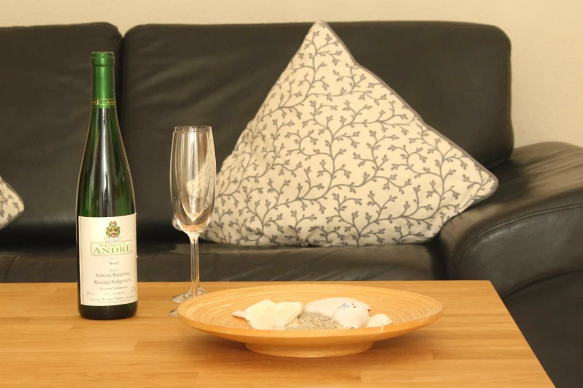 Der kombinierte Wohn- und Essbereich bildet das Zentrum der Ferienwohnung. Machen Sie es sich auf der Couch bequem, ein Flatscreen-TV (Sat) sorgt für Unterhaltung.