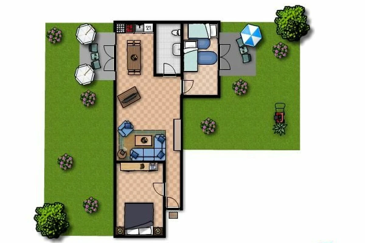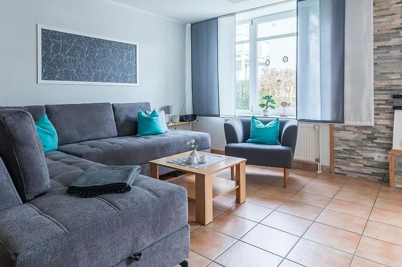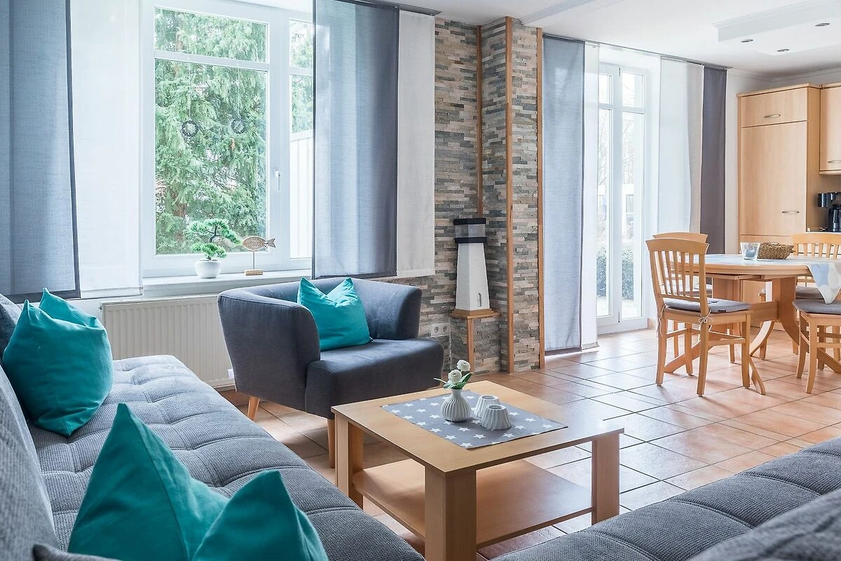 In dieser 70qm grossen 3-Zimmer-Wohnung im Erdgeschoss können Familien bis 5 Gäste + 1 Kleinkind einen tollen Urlaub verbringen.