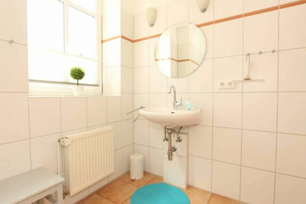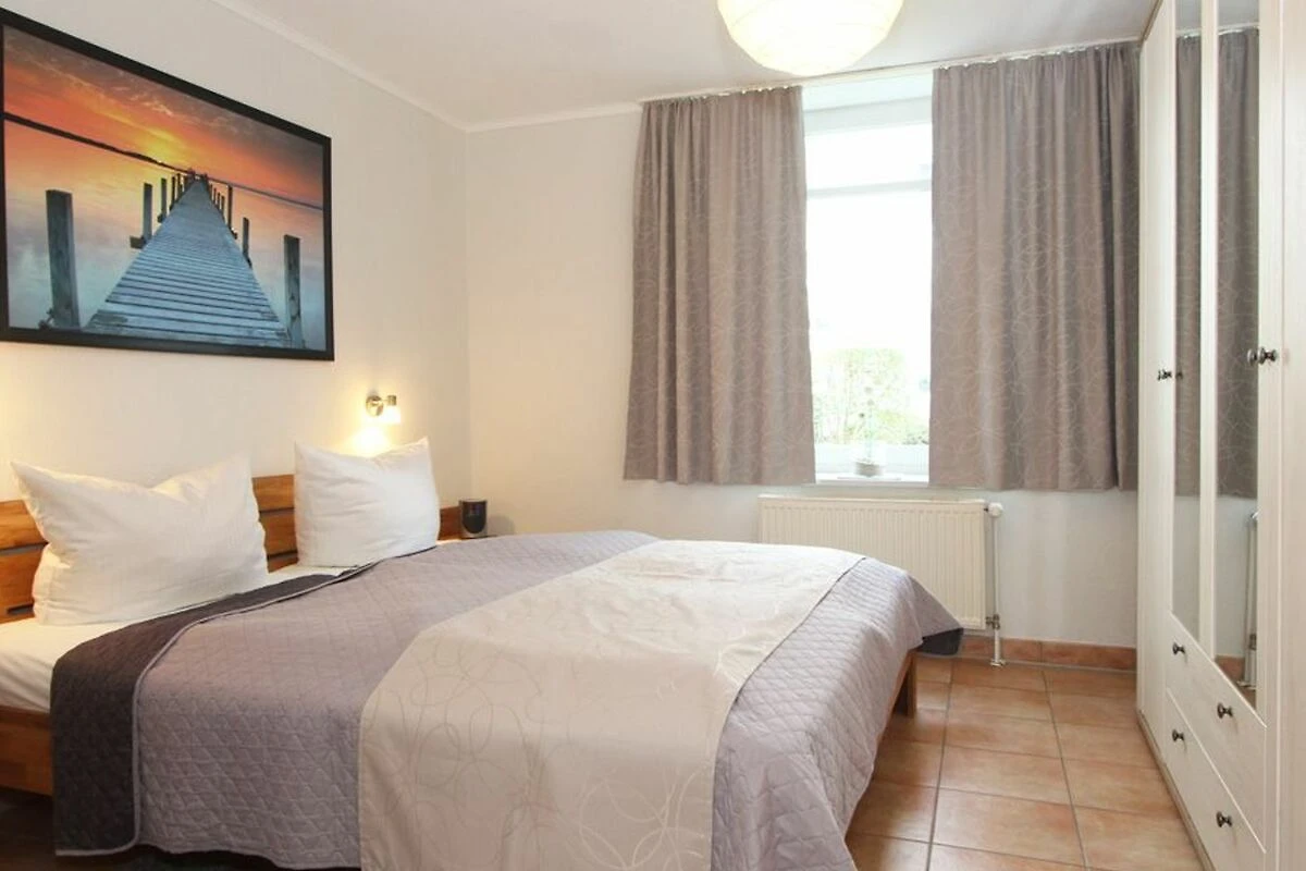 Die Nichtraucher-Ferienwohnung liegt ganz nah am Strand und ist nicht allein deshalb bei Familien sehr begehrt. Für unsere kleinsten Gäste steht in der Wohnung ein Reisebettchen mit passender Matratze kostenfrei zur Verfügung. Auf dem schön angelegten, gepflegten Grundstück mit Garten befindet sich zudem ein kleiner hauseigener Spielplatz. Eine Waschmaschine zur Nutzung steht im Gemeinschaftskeller im Waschraum für Sie bereit.