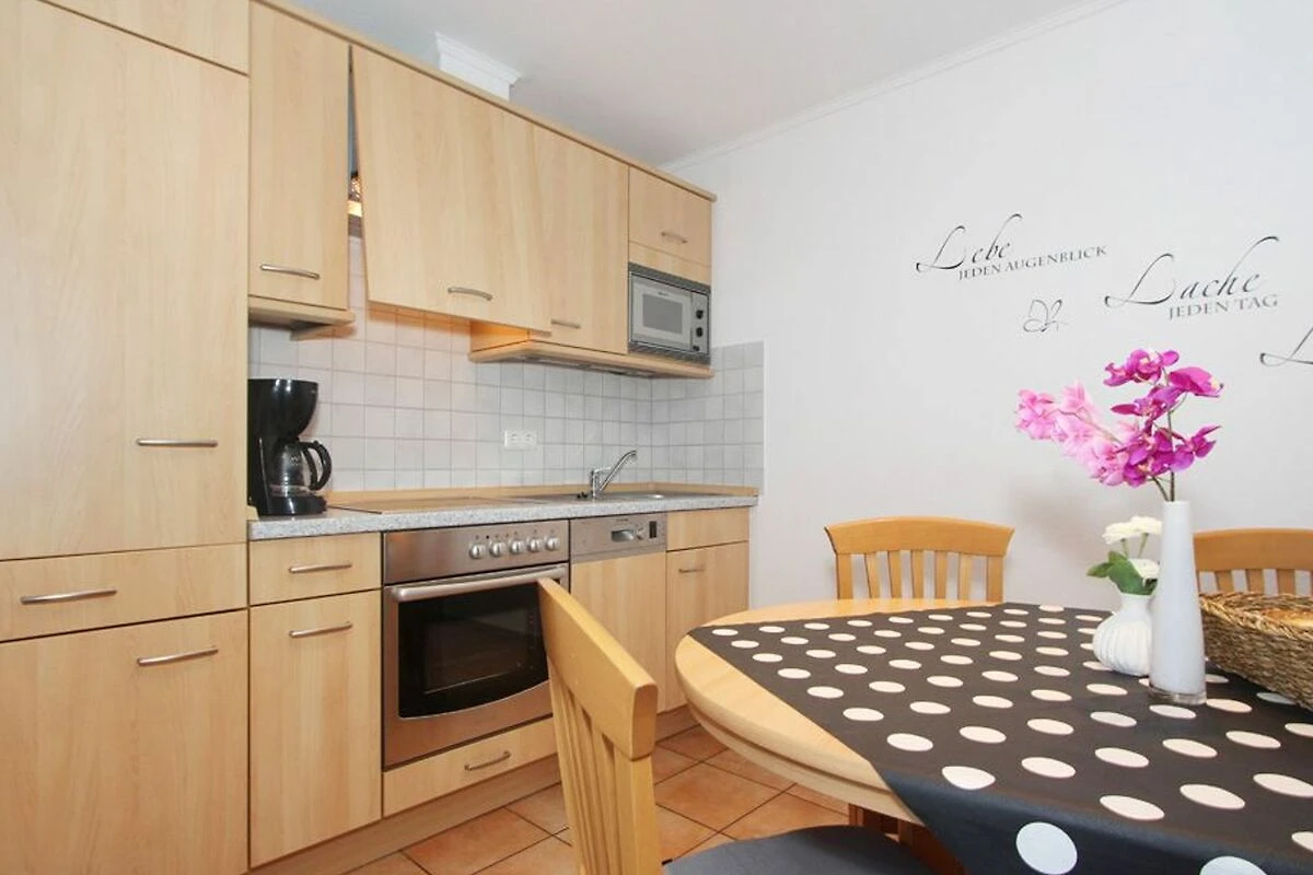 Die perfekt ausgestattete offene Küche eignet sich hervorragend für eine sorglose Selbstversorgung und bietet Ihnen eine gemütliche Essecke.