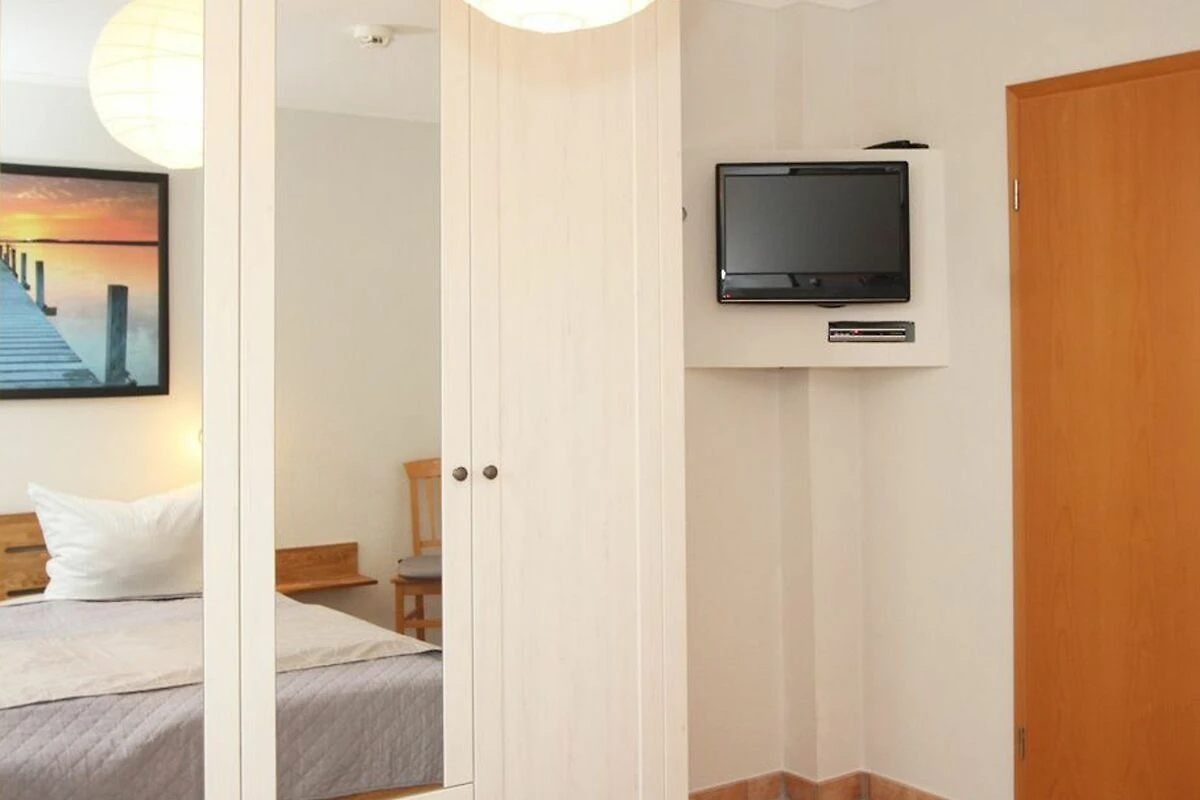 Im Schlafzimmer finden Sie ein breites Doppelbett vor, im Gäste-/ Kinderzimmer befinden sich zwei Einzelbetten. Jedes der Schlafzimmer verfügt über einen eigenen TV, für Ihre Garderobe befindet sich im Schlafzimmer ein Kleiderschrank und im Gäste-/ Kinderzimmer eine Kommode.
