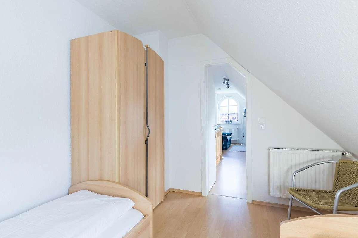 Für unsere kleinen Gäste stehen ein Kinder-Reisebettchen sowie ein Hochstuhl kostenlos in der Wohnung zur Nutzung bereit. Das Bettchen lässt sich gut im Wohnzimmer oder auch im obigen Gäste-/ Kinderzimmer platzieren.