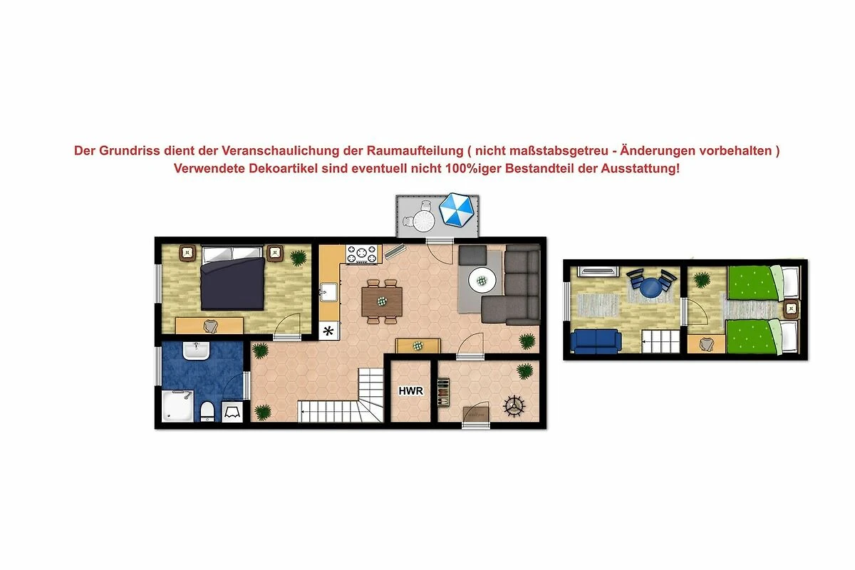 Die schön geschnittene und moderne 3-Zimmer-Ferienwohnung im 1.OG bietet über 2 Ebenen auf rund 70qm Wohnfläche Platz für 4 Gäste.