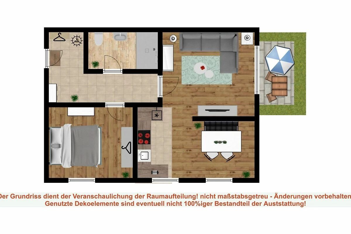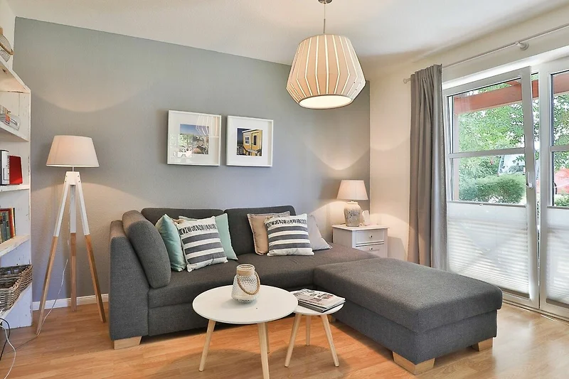 Die hell gestaltete und moderne 2-Zimmer-Ferienwohnung im Erdgeschoss bietet auf rund 60qm Wohnfläche Platz für 2 Gäste. Sie besticht durch eine ansprechende Aufteilung: