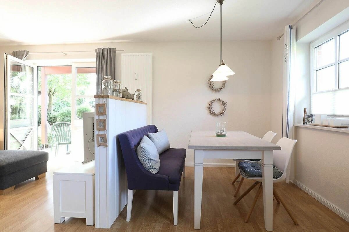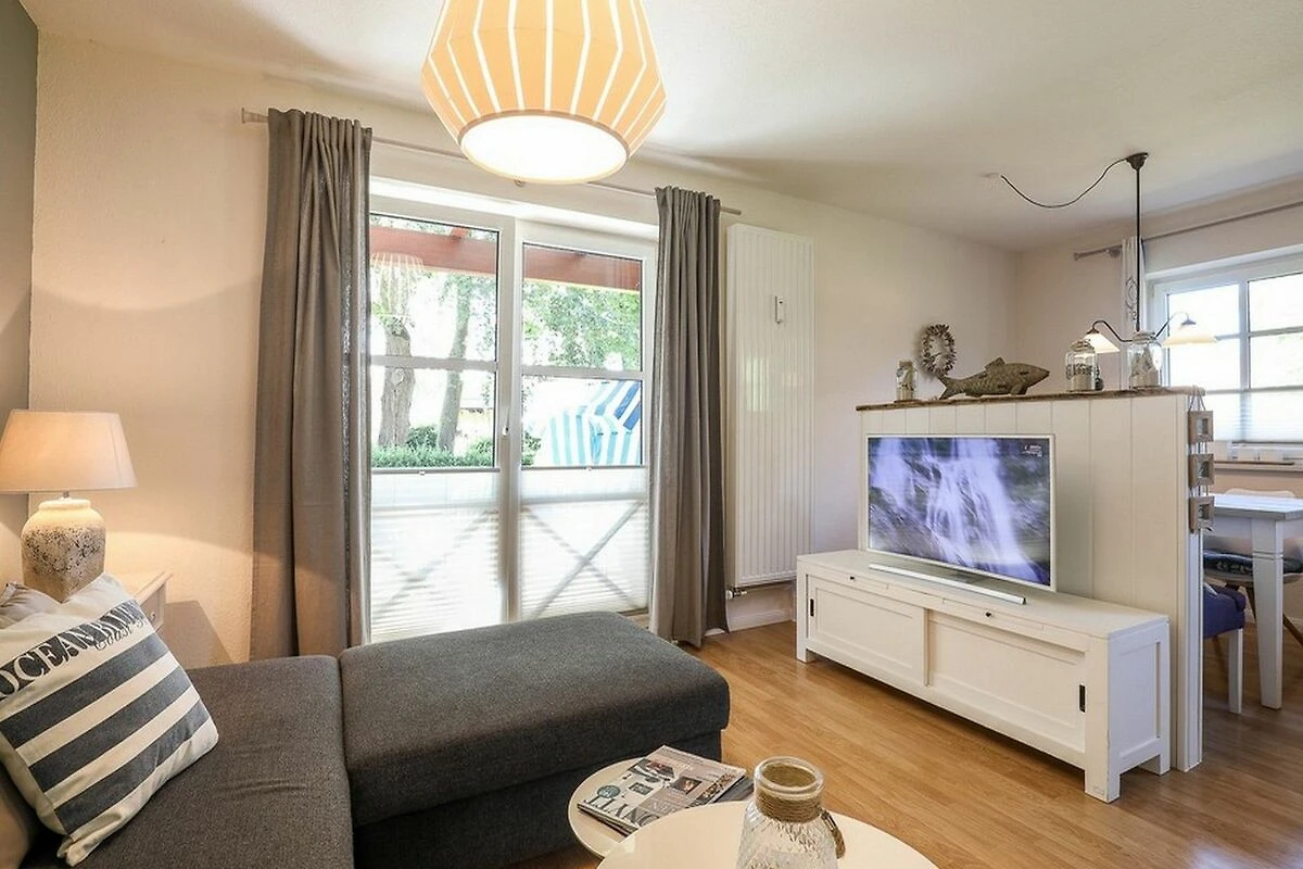 Durch die Lage im Erdgeschoss ist diese Nichtraucher-Ferienwohnung auch für Senioren geeignet und bietet einen komfortablen Zugang. Auf der Terrasse befindet sich ein Strandkorb. Der Strand ist nur 150 Meter entfernt und gut zu Fuss erreichbar. Rauchen ist nur auf der Terrasse gestattet.