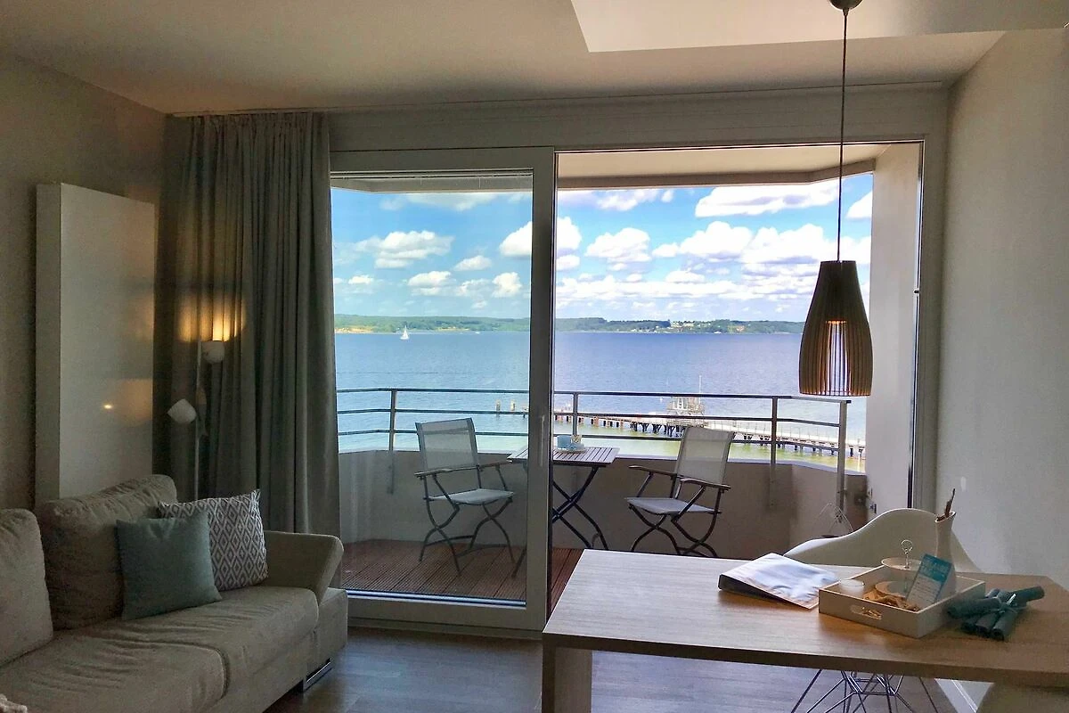 Ankommen, Füsse hochlegen und den Blick über die Flensburger Förde bis nach Dänemark schweifen lassen. In unserem Appartement FördeHimmel, direkt an der Strandpromenade von Glücksburg gelegen, im Gebäudekomplex Intermar, kann man genau das.