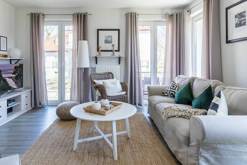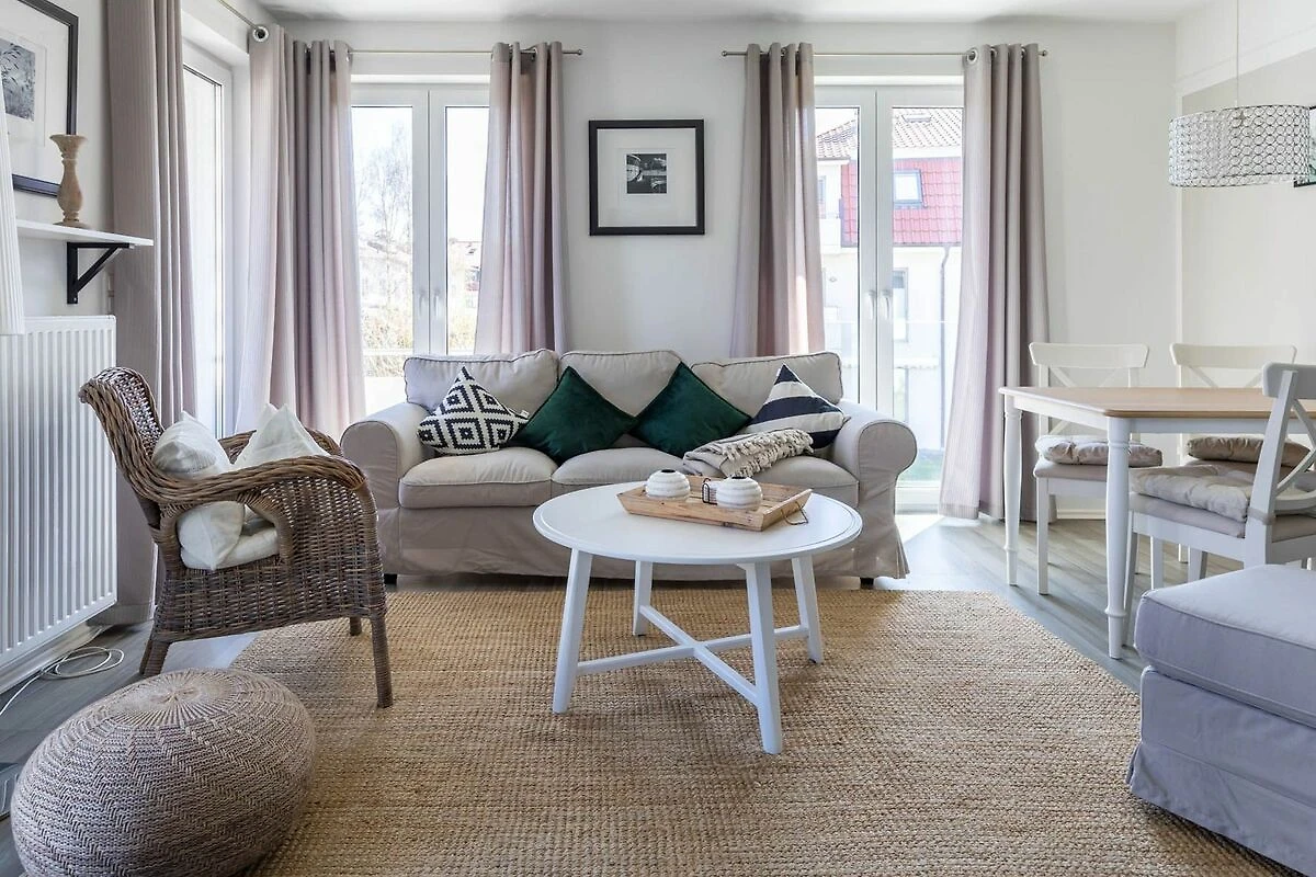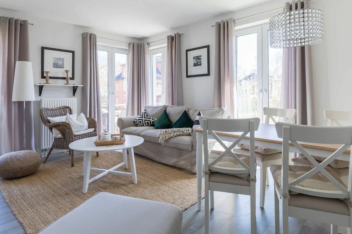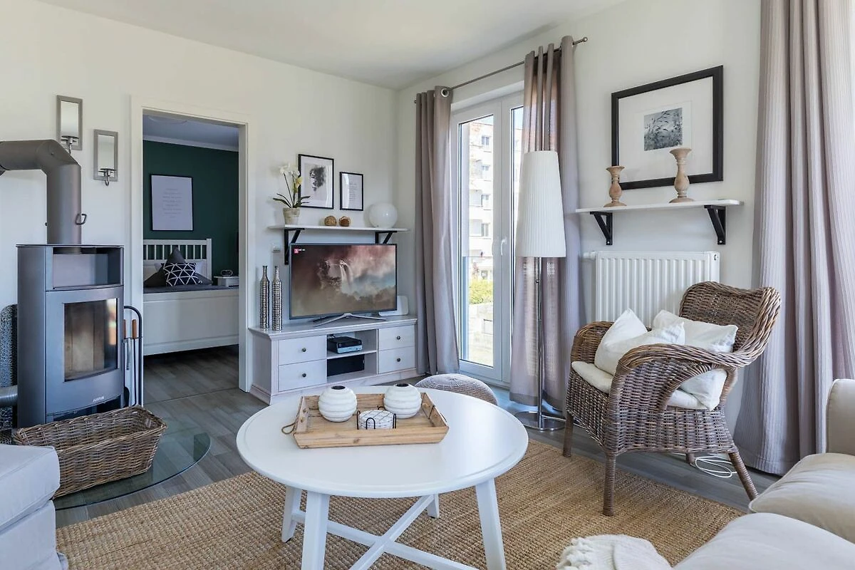 Die strandnahe 3-Zimmer-Wohnung hat eine Grösse von 56qm und ist für 4 Gäste in hellem Landhausstil eingerichtet.