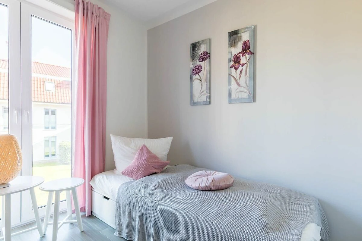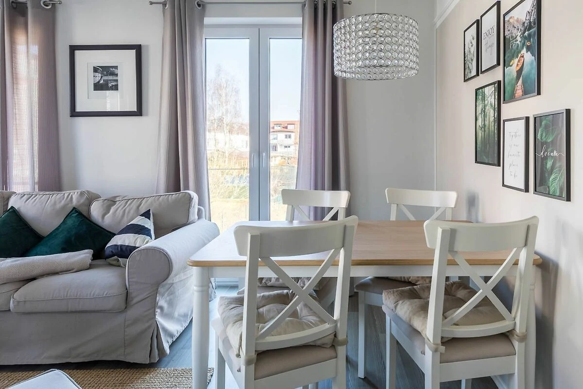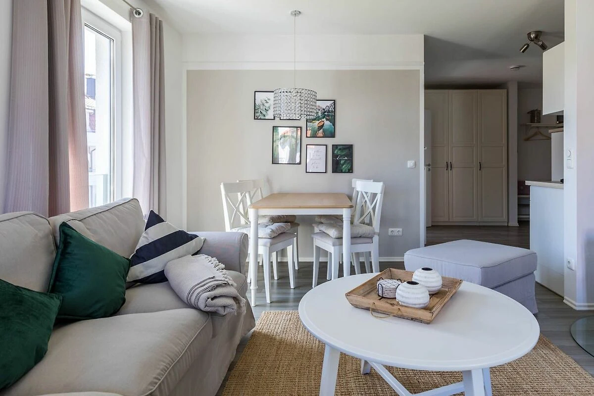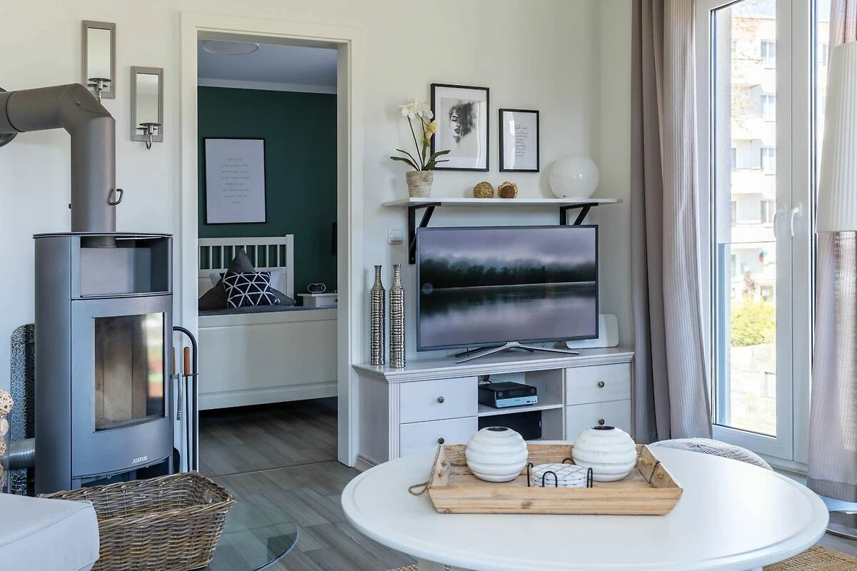 Die strandnahe 3-Zimmer-Wohnung hat eine Grösse von 56qm und ist für 4 Gäste in hellem Landhausstil eingerichtet.