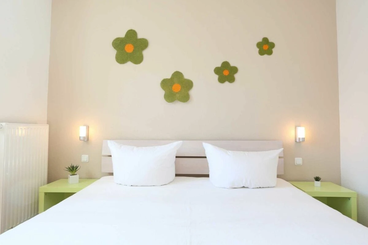 Das farblich abgestimmte Schlafzimmer bietet ein Doppelbett (180x200cm) sowie einen geräumigen Kleiderschrank. Aus dem Bett können Sie auch in diesem Zimmer gemütlich auf dem Flatscreen-TV fernsehen.