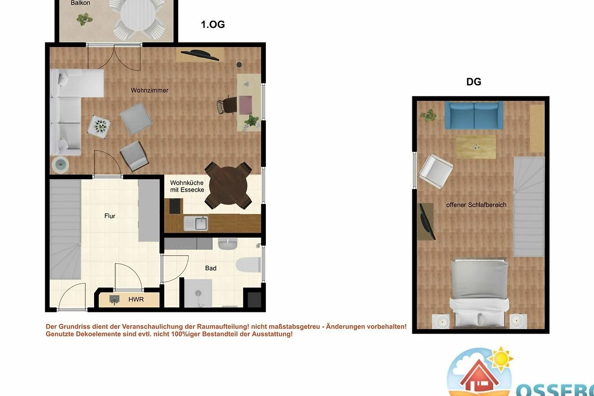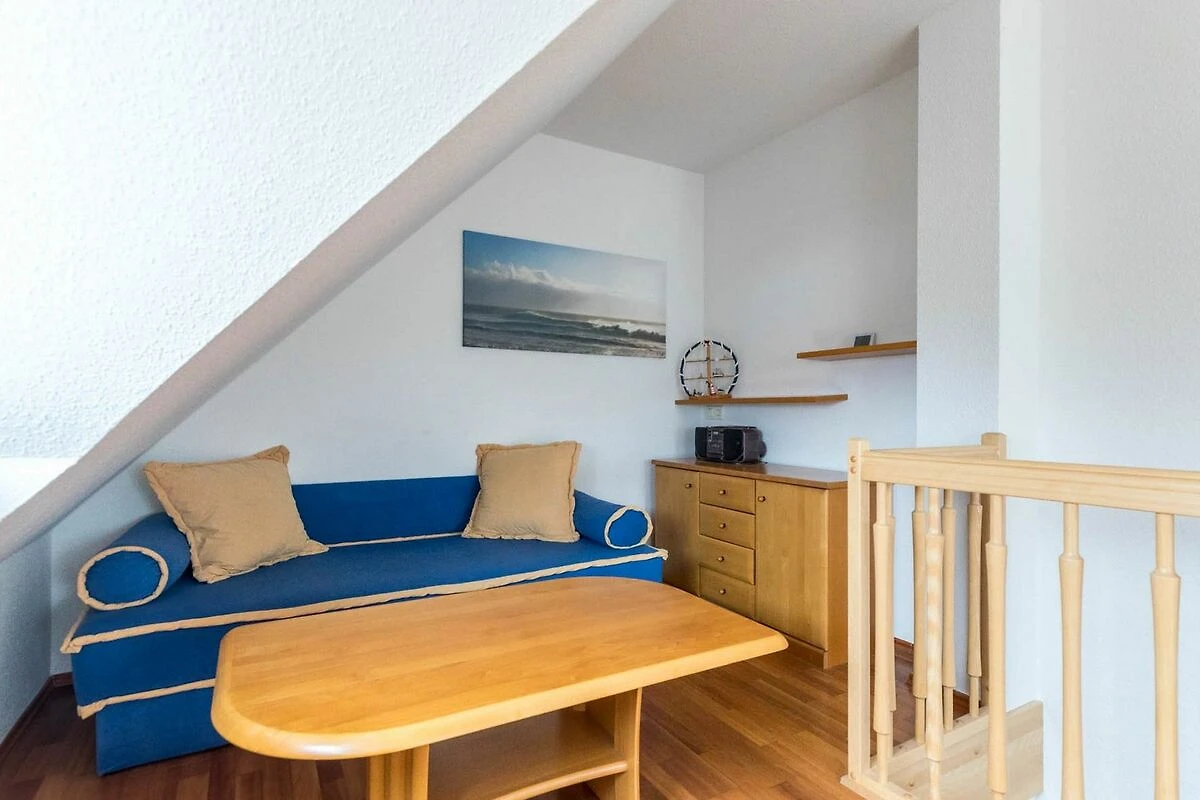 Die 2-Zimmer-Ferienwohnung für max. 4 Gäste im 1.OG erstreckt sich über 2 Wohnebenen und wartet mit einer gemütlichen Ausstattung auf Sie.