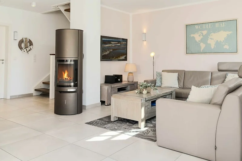 • Offener Wohnbereich mit Kamin für gemütliche Abende
