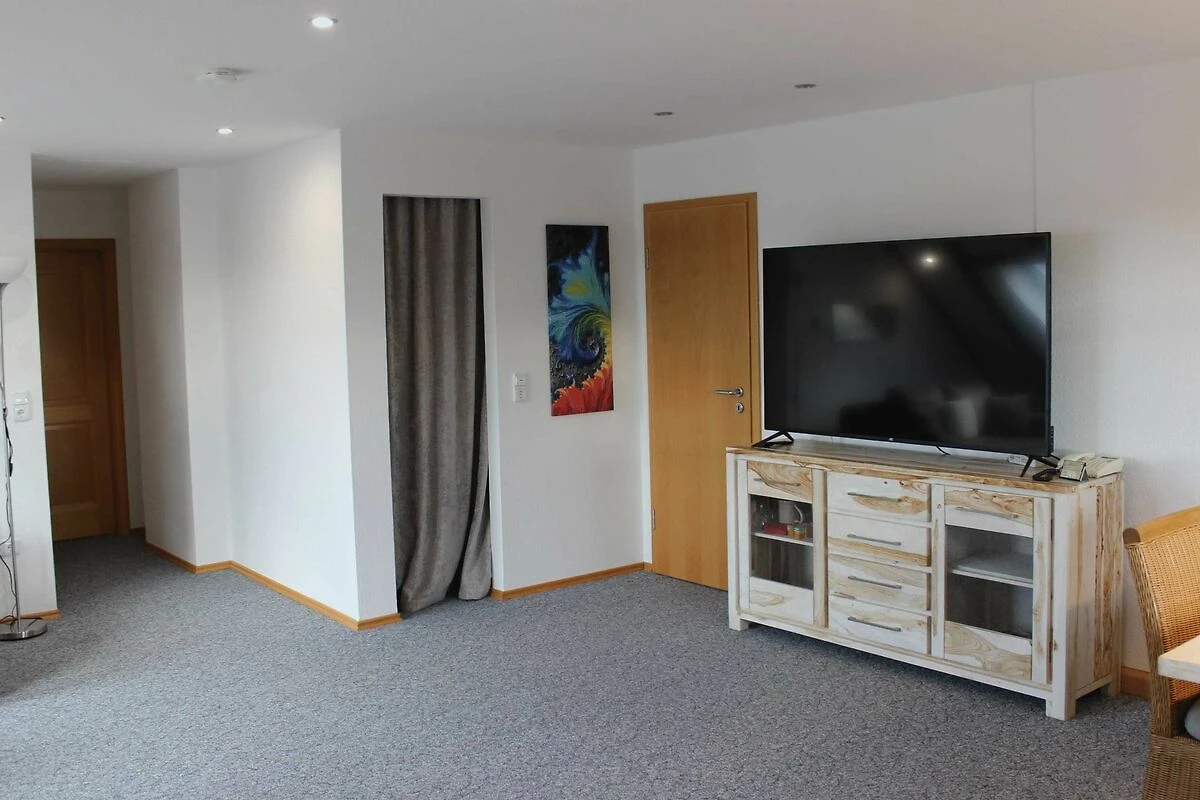 Die Wohnung hat 2 Schlafzimmer mit jeweils 2 Einzelbetten die man je nach Bedarf zusammenstellen kann. Im grossen Wohnzimmer sitzen Sie gemütlich auf 2 Sofas mit Couchtisch. Für den guten Durchblick sorgt hier der 65 TV-Flachbild Fernseher. Am Esstisch können bequem 4 Personen sitzen.Die offene Küche hat alles was man in seinem Urlaub braucht: Herd, Backofen, Kühlschrank mit Gefrierfach, Mikrowelle, Kaffeemaschine, Wasserkocher, Toaster. Das Bad ist mit Dusche, WC, Waschbecken und Föhn ausgestattet. Die Wohnung ist mit Teppich ausgelegt, in Schlafzimmer 2 liegt ein Laminatboden.