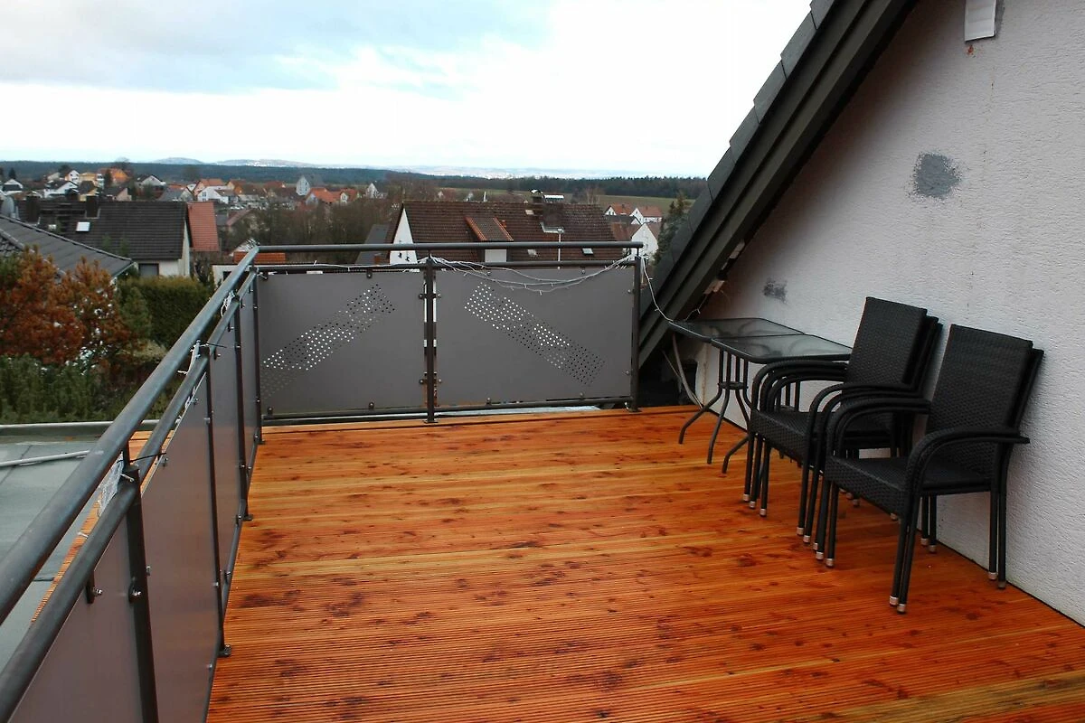 Besonderheit: Auf der fast 25qm grossen Sonnenterrasse haben Sie einen sagenhaften Panoramablick in Richtung Süd/West, Altenburg, Bamberg und Hallstadt. Für den Schatten sorgt hier eine elektrische Markise.