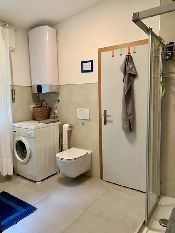 Im Badezimmer mit Rainshower-Dusche finden Sie eine Waschmaschine. Die Küche ist sehr gut ausgestattet mit einem Elektroherd mit Backofen, Kühlschrank mit Eisfach, Spülmaschine, Kaffeemaschine sowie ausreichend Geschirr und Besteck.