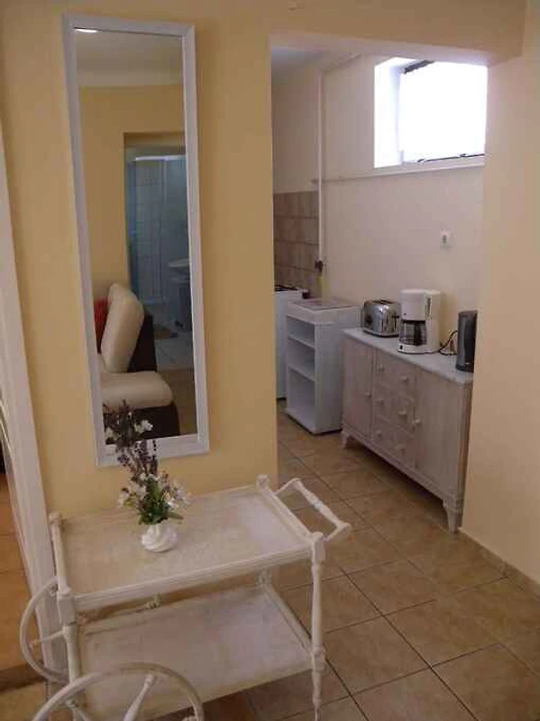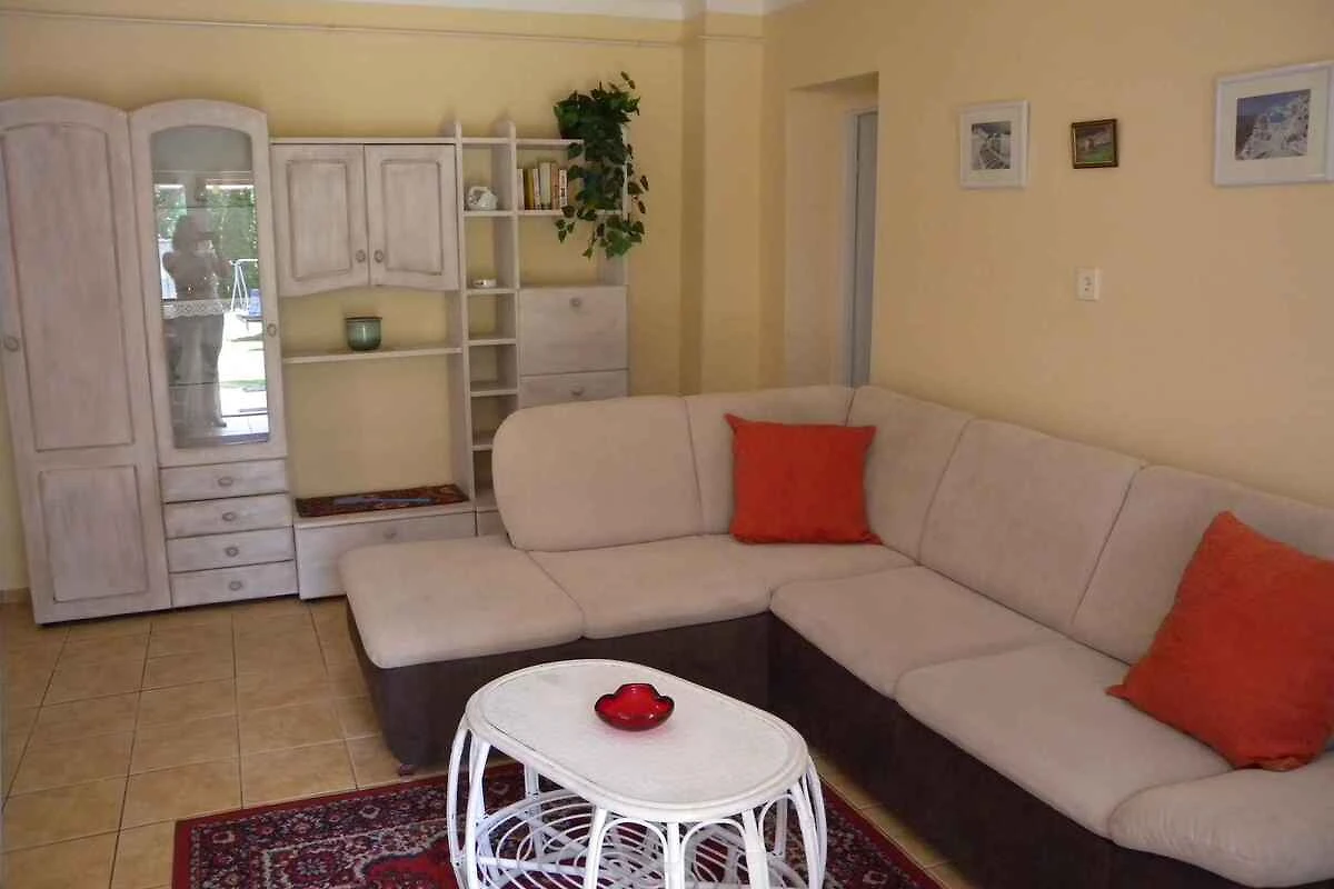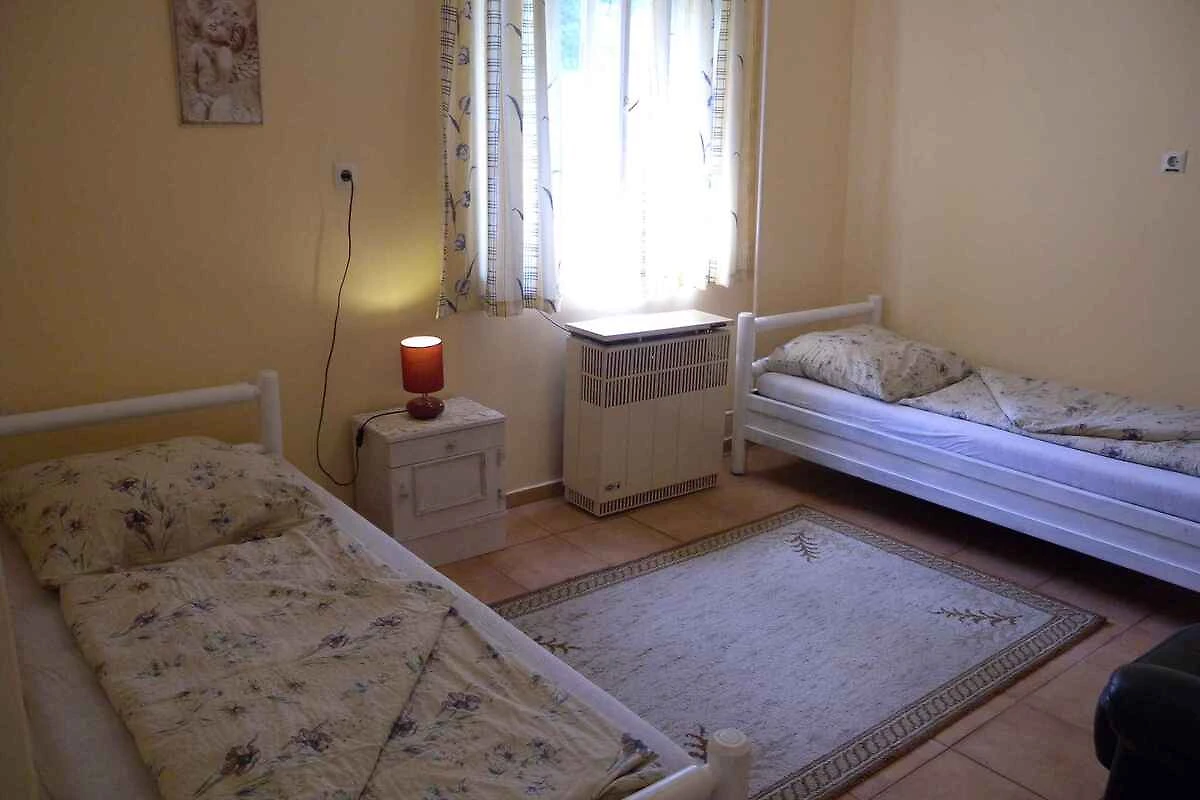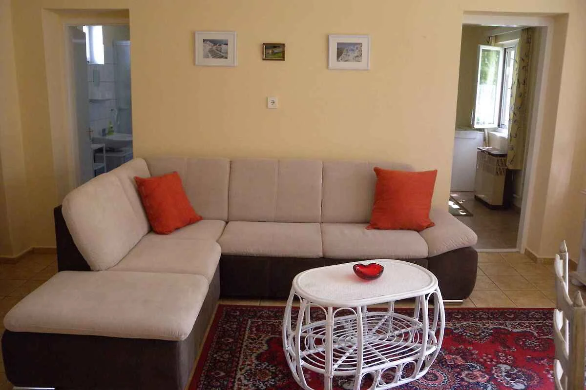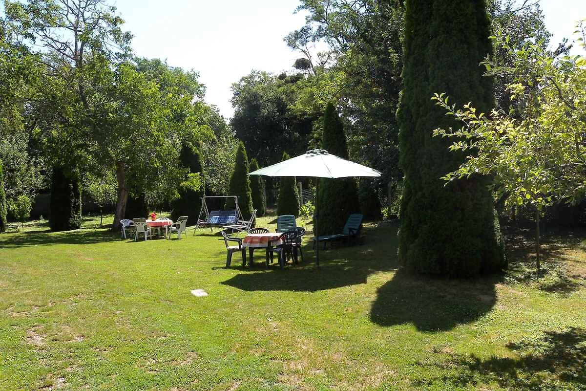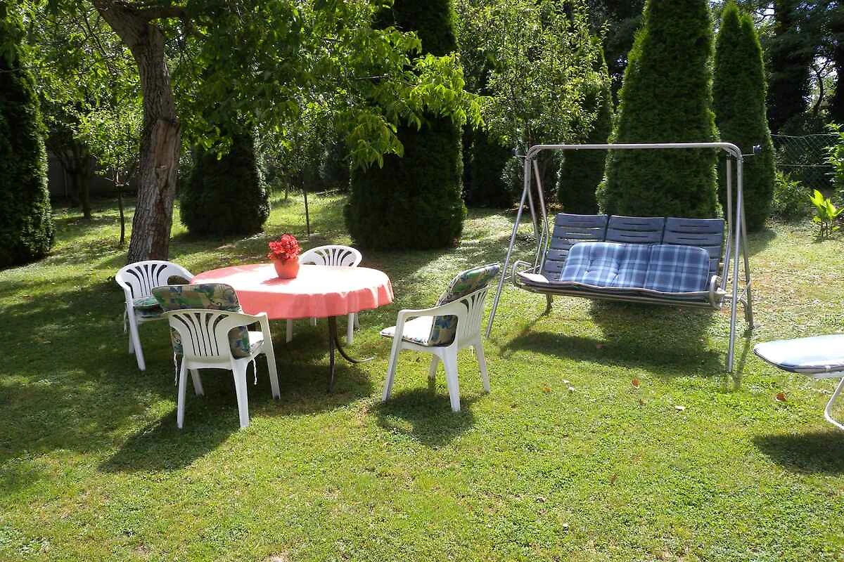 Balatonberény. Die Ferienwohnung befindet sich auf einem 1430 qm grossen, geschlossenen Gartengrundstück mit Wiese, Blumen, Sträuchern und Bäumen, von einem Zaun begrenzt. Der Vermieter wohnt in einem separaten Gebäude auf dem Grundstück. ****Nur Hunde sind erlaubt. Die Zufahrt erfolgt über eine Nebenstrasse. Parkplatz (für 1 Pkw) auf dem Grundstück.
