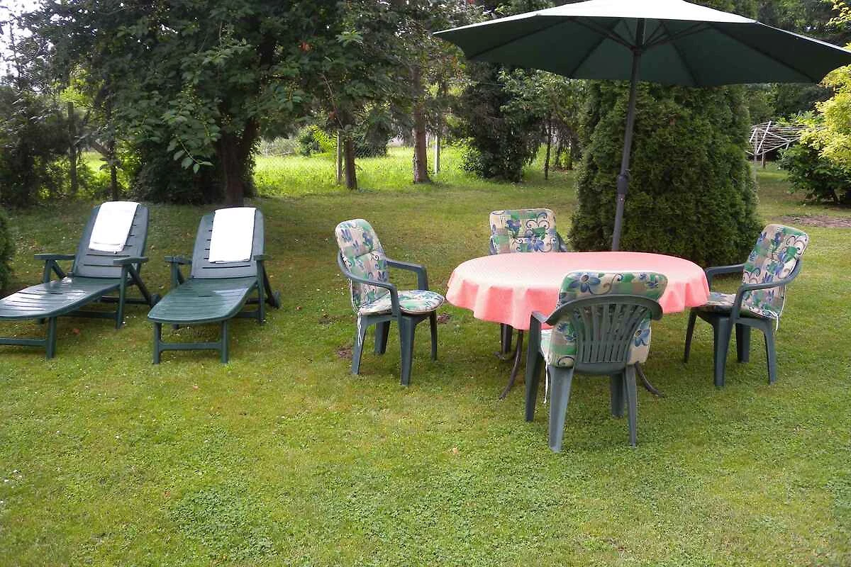 Die Ferienwohnung ist rustikal eingerichtet. Das Grundstück liegt in einem Wohngebiet. Auch wegen der ruhigen und sonnigen Lage ist das Domizil beliebt. Zur gemeinsamen Nutzung stehen zur Verfügung: Liegewiese, Sonnenschirm, Sonnenliege, Grillmöglichkeit, Gartenmöbel und Hollywood-Schaukel.