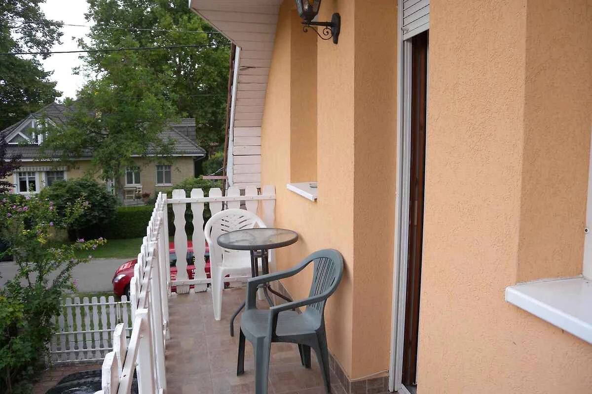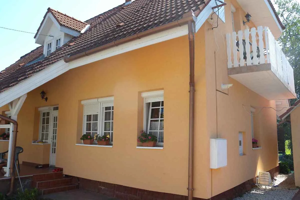 Balatonboglár. Die Ferienwohnung befindet sich auf einem 370 qm grossen, geschlossenen Gartengrundstück mit Wiese, Blumen und Sträuchern, von einem Zaun begrenzt. Der Vermieter wohnt ständig im Haus, nutzt jedoch einen separaten Eingang. Die Zufahrt erfolgt über eine Nebenstrasse (asphaltiert). Parkplatz (für 2 Pkws) auf dem Grundstück.