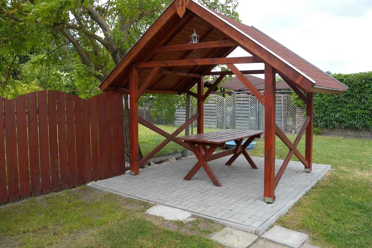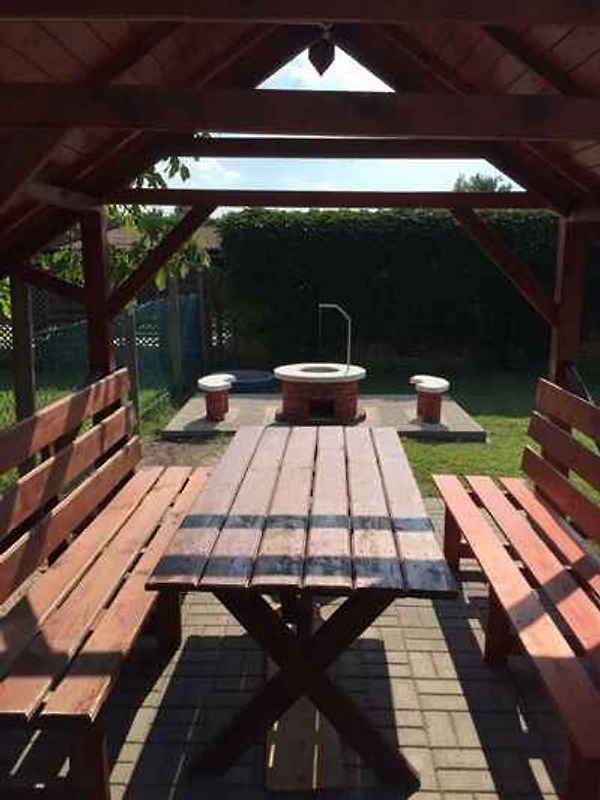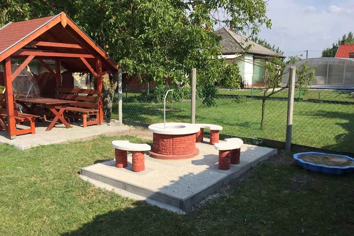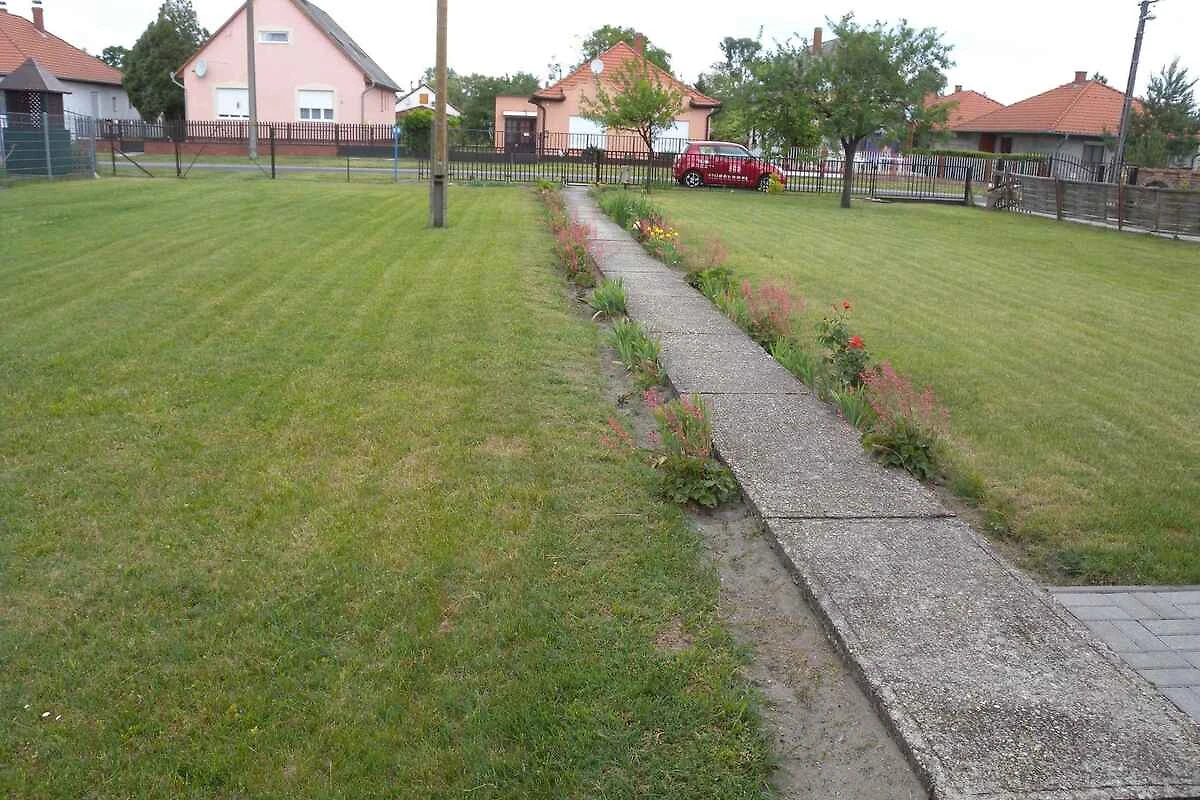 Balatonfenyves. Das Ferienhaus befindet sich auf einem 1140 qm grossen, geschlossenen Gartengrundstück mit Wiese, Blumen, Sträuchern und Bäumen, von einem Zaun begrenzt. Der Vermieter wohnt in einem separaten Gebäude auf dem Grundstück. Die Zufahrt erfolgt über eine Nebenstrasse (asphaltiert). Parkplatz (für 4 Pkws) auf dem Grundstück.
