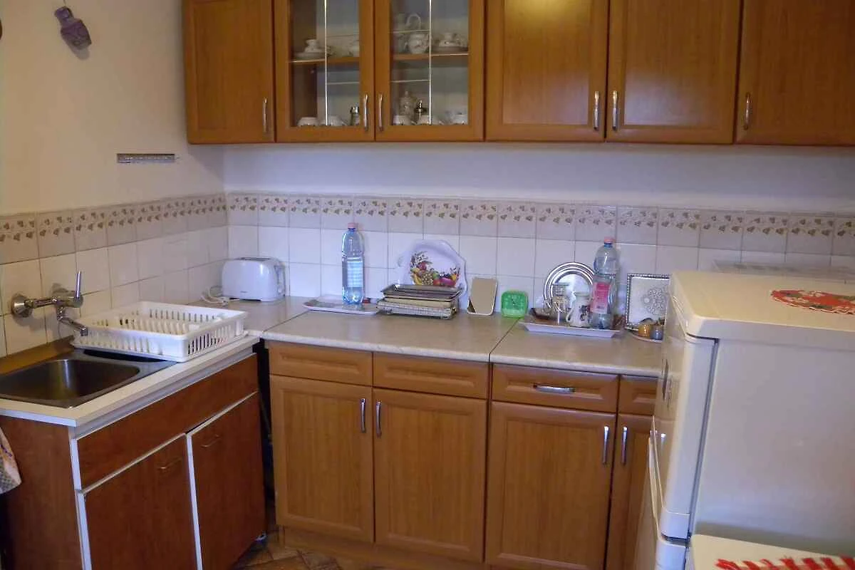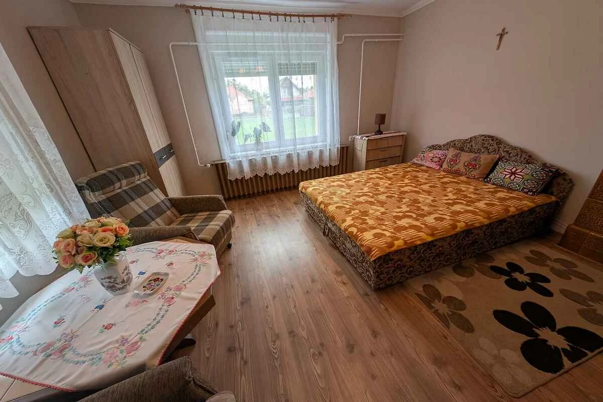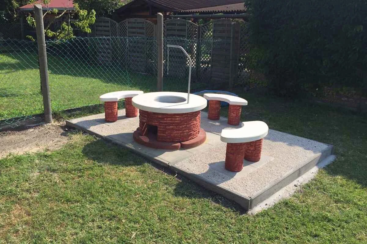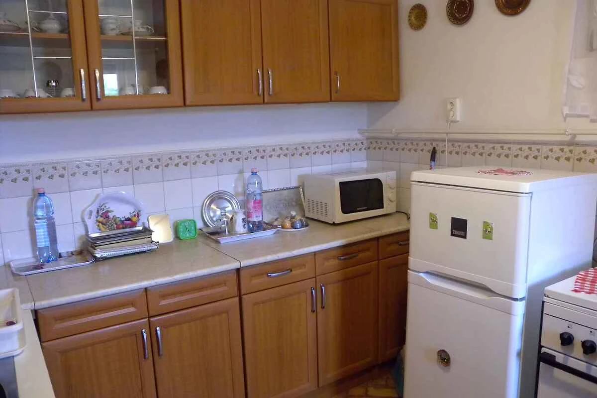 Balatonfenyves. Das Ferienhaus befindet sich auf einem 1140 qm grossen, geschlossenen Gartengrundstück mit Wiese, Blumen, Sträuchern und Bäumen, von einem Zaun begrenzt. Der Vermieter wohnt in einem separaten Gebäude auf dem Grundstück. Die Zufahrt erfolgt über eine Nebenstrasse (asphaltiert). Parkplatz (für 4 Pkws) auf dem Grundstück.