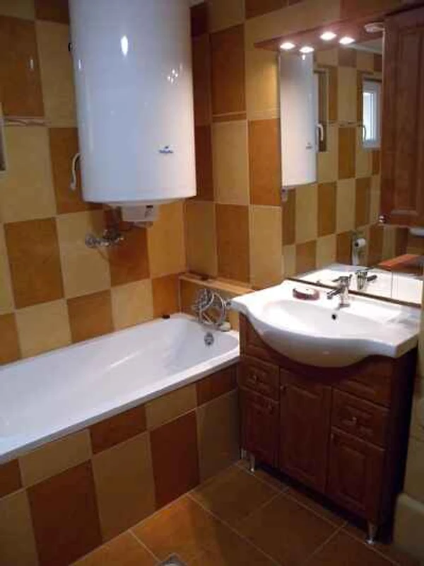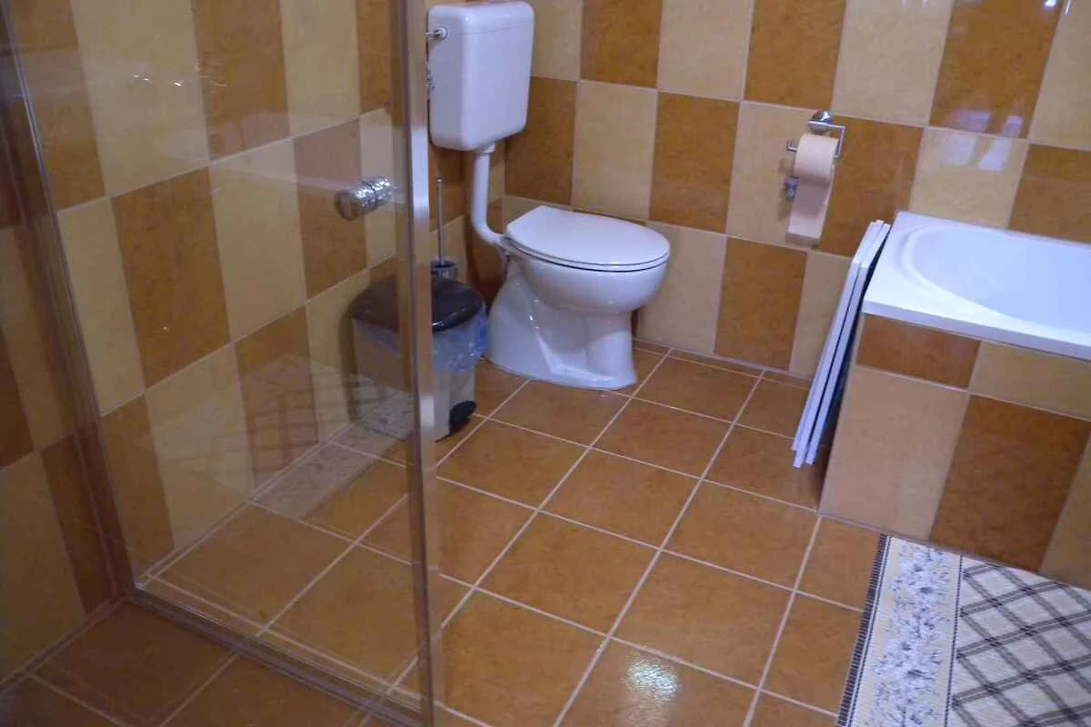 Große Zimmer, renoviertes Bad mit Dusche und Badewanne.