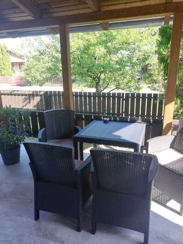 Balatonfenyves. Das Ferienhaus befindet sich auf einem geschlossenen Gartengrundstück mit Wiese, Blumen, Sträuchern und Bäumen. Der Vermieter wohnt nur zeitweise in einem separaten Gebäude auf dem Grundstück. Dieses ruhige Gästehaus liegt in der Nähe des Plattensees, nur 5 Gehminuten von der ersten kleinen Strasse neben der Hauptstrasse entfernt. Obwohl der Bahnhof und die Hauptstrasse 5-10 Gehminuten entfernt sind, ist der Verkehrslärm in dieser Gegend weit entfernt. Parken auf dem Grundstück. Klimaanlage WLAN-Verfügbarkeit!. Die Zufahrt erfolgt über eine Nebenstrasse (asphaltiert). Parkplatz auf dem Grundstück. Das FerienObjekt befindet sich in einer Stichstrasse.