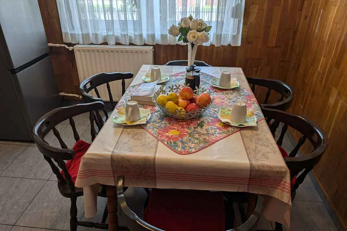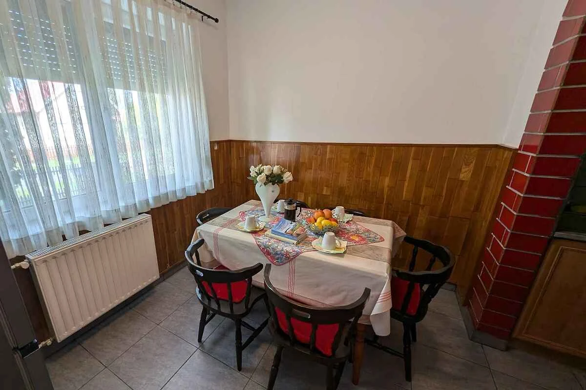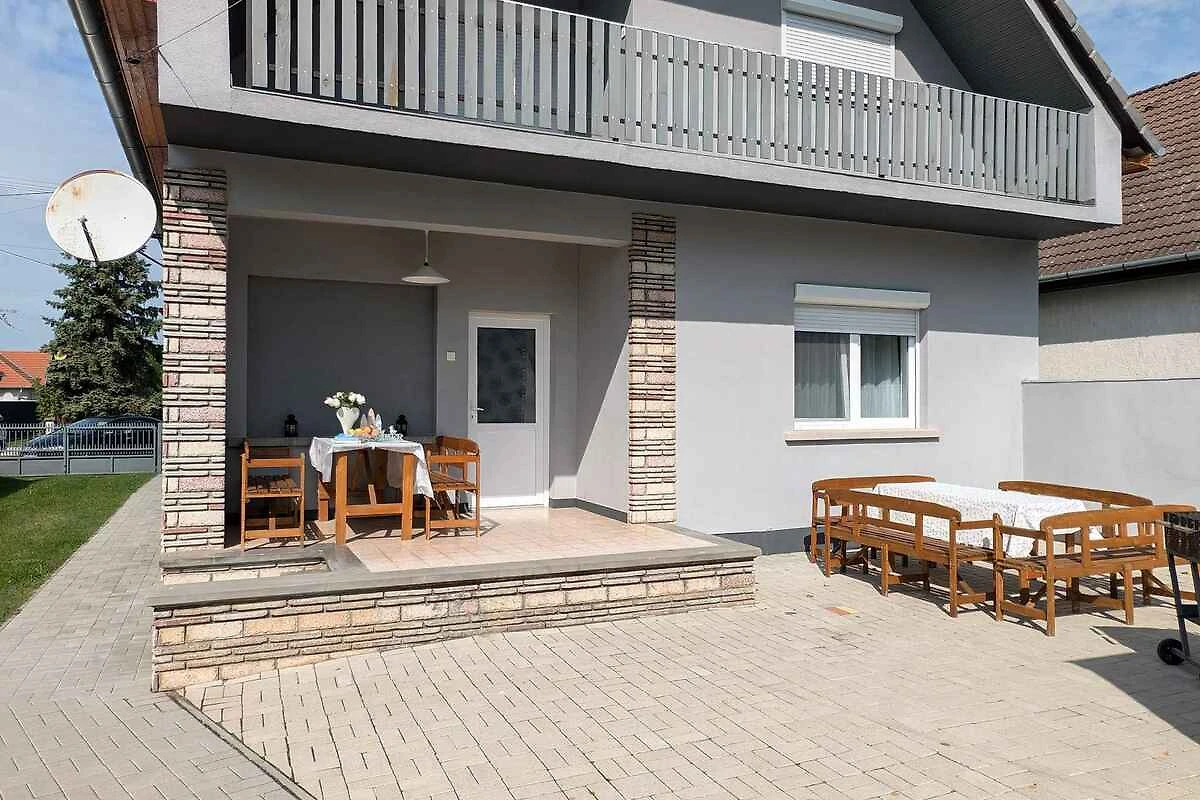 Balatonfenyves. Das Ferienhaus befindet sich auf einem 500 qm grossen, geschlossenen Gartengrundstück mit Wiese und Blumen, von einem Zaun begrenzt. Der Vermieter wohnt nicht im Haus oder auf dem Grundstück. Die Zufahrt erfolgt über eine Nebenstrasse (asphaltiert). Parkplatz (für 4 Pkws) auf dem Grundstück.