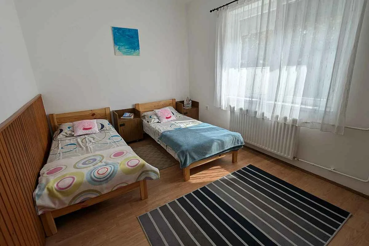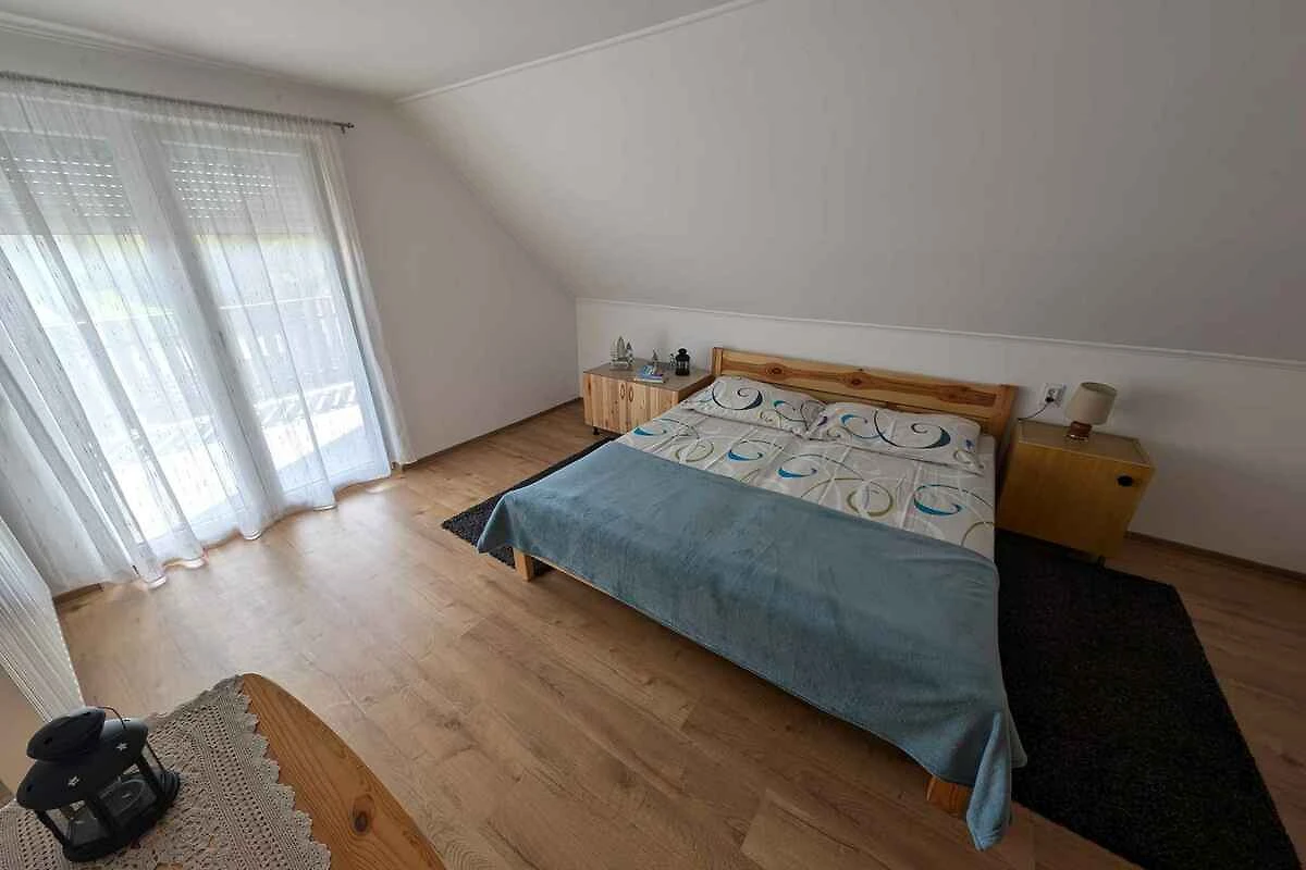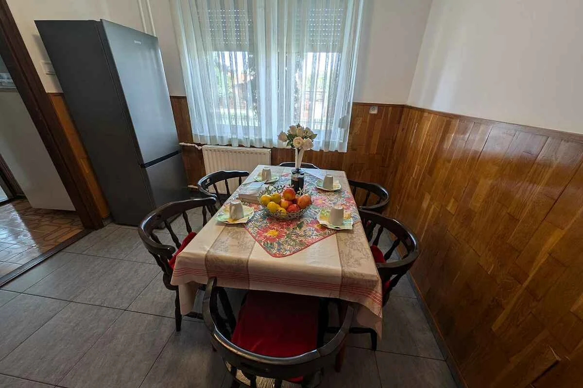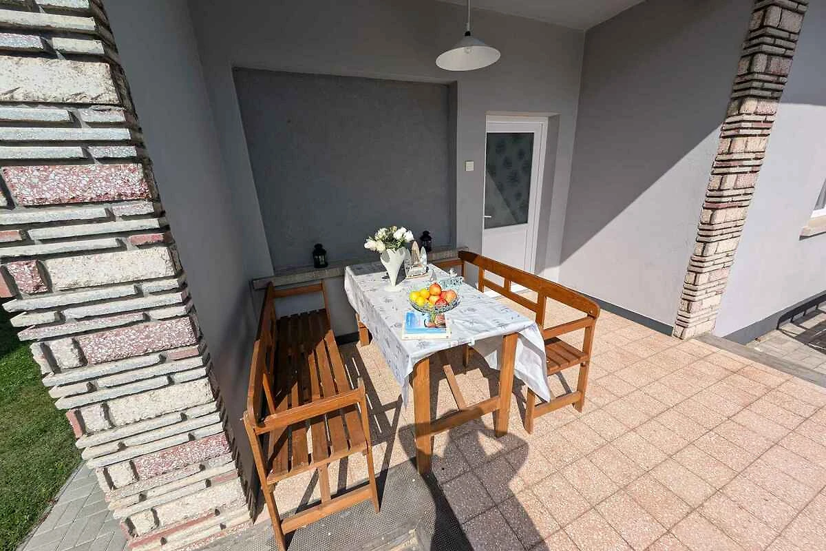 Balatonfenyves. Das Ferienhaus befindet sich auf einem 500 qm grossen, geschlossenen Gartengrundstück mit Wiese und Blumen, von einem Zaun begrenzt. Der Vermieter wohnt nicht im Haus oder auf dem Grundstück. Die Zufahrt erfolgt über eine Nebenstrasse (asphaltiert). Parkplatz (für 4 Pkws) auf dem Grundstück.
