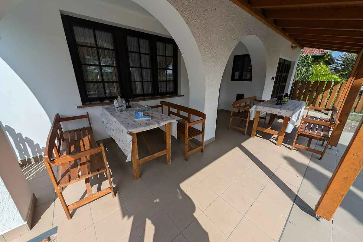 Balatonfenyves. Das Ferienhaus befindet sich auf einem 600 qm grossen Grundstück. Der Vermieter wohnt nicht im Haus oder auf dem Grundstück. Parkplatz (für 4 Pkws) auf dem Grundstück.