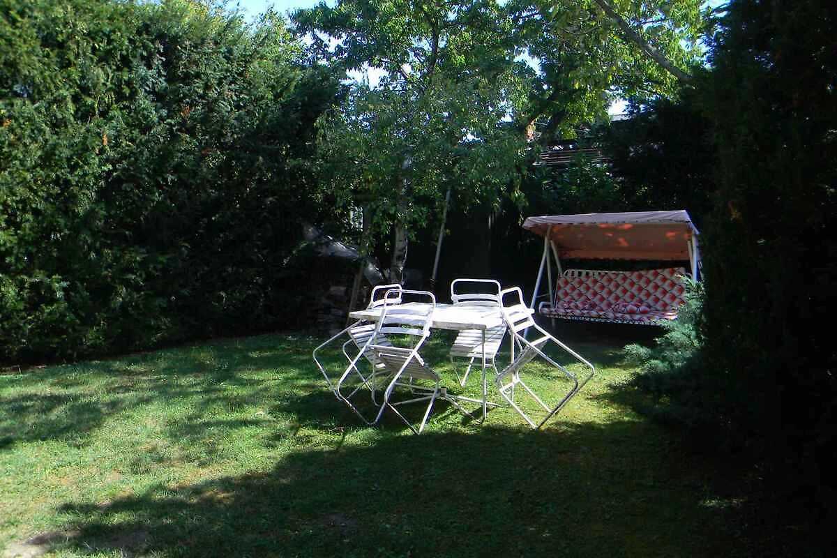 Balatonfüred. Das Ferienhaus befindet sich auf einem 300 qm grossen, geschlossenen Gartengrundstück mit Wiese, Blumen, Sträuchern und Bäumen, von einer Hecke begrenzt. Der Vermieter wohnt nicht im Haus oder auf dem Grundstück. Nur kleiner Hund bis 5 kg erlaubt. Die Zufahrt erfolgt über eine Nebenstrasse (asphaltiert). Parkplatz (für 2 Pkws) auf dem Grundstück.