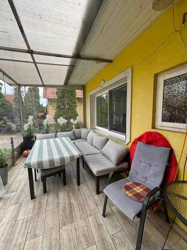Balatonfűzfő. Das Ferienhaus befindet sich auf einem 1300 qm grossen, geschlossenen Gartengrundstück mit Wiese, Blumen, Sträuchern und Bäumen, von einem Zaun begrenzt. Der Vermieter wohnt in einem separaten Gebäude auf dem Grundstück. Das Ferienhaus ist gelegen in Balatonfüzfő, 30 km von Bella Stables and Animal Park, 23 km von Wasserpark Annagora und 30 km von Innerer See von Tihany entfernt. Diese Unterkunft bietet Zugang zu einem Balkon und kostenlosen Privatparkplätzen. Die Zufahrt erfolgt über eine Nebenstrasse (asphaltiert). Parkplatz (für 4 Pkws) auf dem Grundstück.