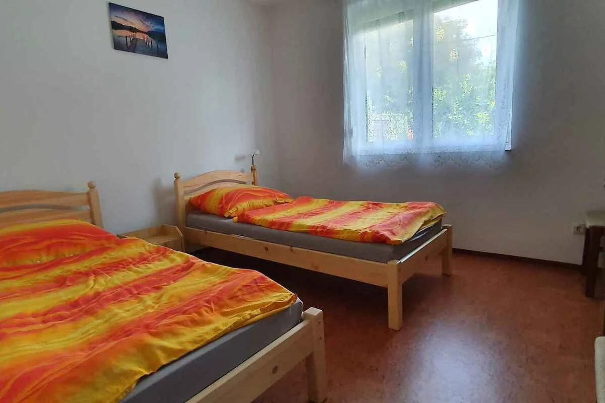 Gyenesdiás. Die Ferienwohnung befindet sich auf einem geschlossenen Gartengrundstück mit Wiese, Blumen, Sträuchern und Bäumen. Der Vermieter wohnt nicht im Haus oder auf dem Grundstück. Im Haus befindet sich noch eine FerienWohnung BAL GYE 089 (4-6 Personen). Die Zufahrt erfolgt über eine Nebenstrasse (Geröll oder Schotter). Parkplatz auf dem Grundstück.