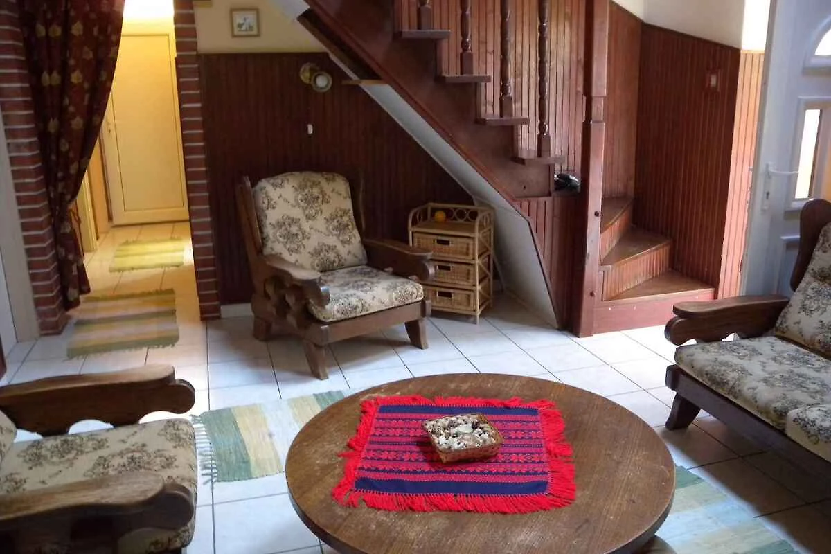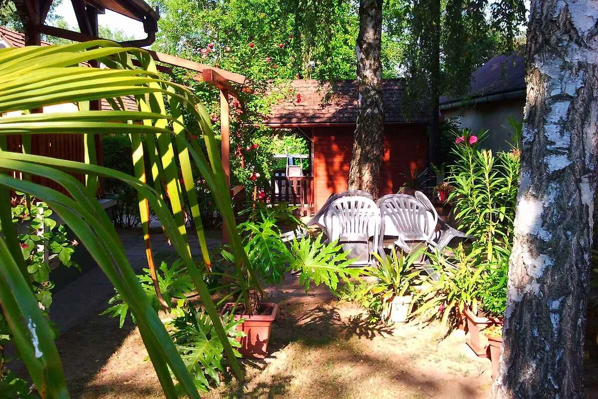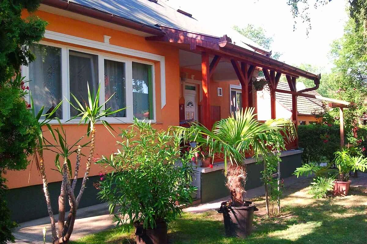 Balatonlelle. Das Ferienhaus befindet sich auf einem 400 qm grossen, geschlossenen Gartengrundstück mit Wiese, Blumen und Sträuchern, von einem Zaun begrenzt. Der Vermieter wohnt in einem separaten Gebäude auf dem Grundstück. Die Zufahrt erfolgt über eine Nebenstrasse (asphaltiert). Parkplatz (für 5 Pkws) auf dem Grundstück.