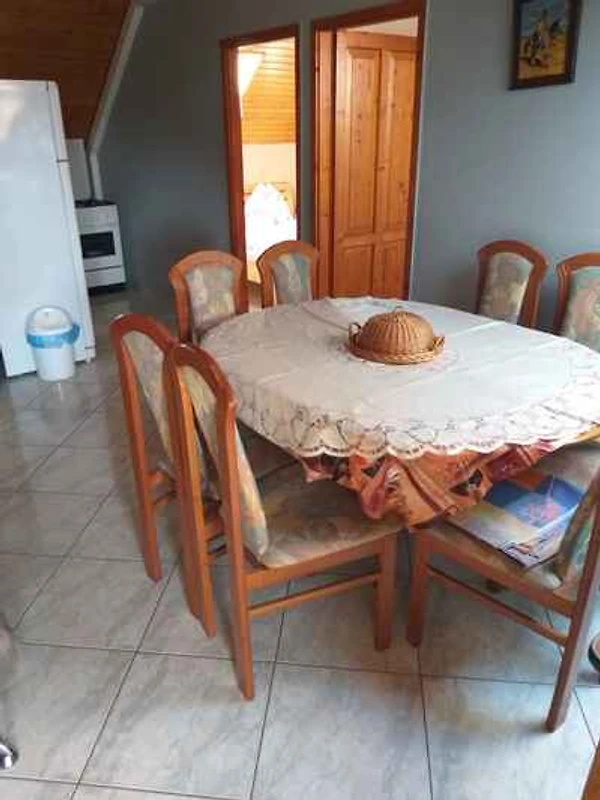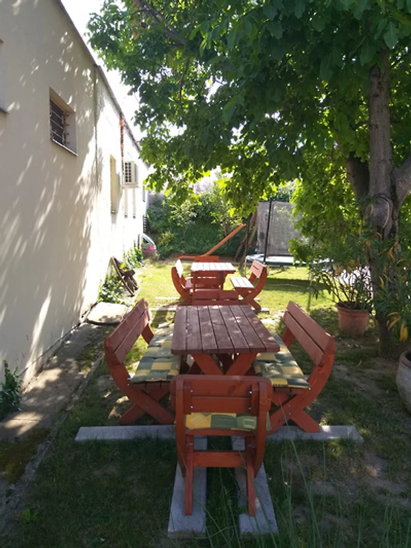 Balatonlelle. Die Ferienwohnung befindet sich auf einem Gartengrundstück. Der Vermieter wohnt in einem separaten Gebäude auf dem Grundstück. Parkplatz (für 4 Pkws) auf dem Grundstück.