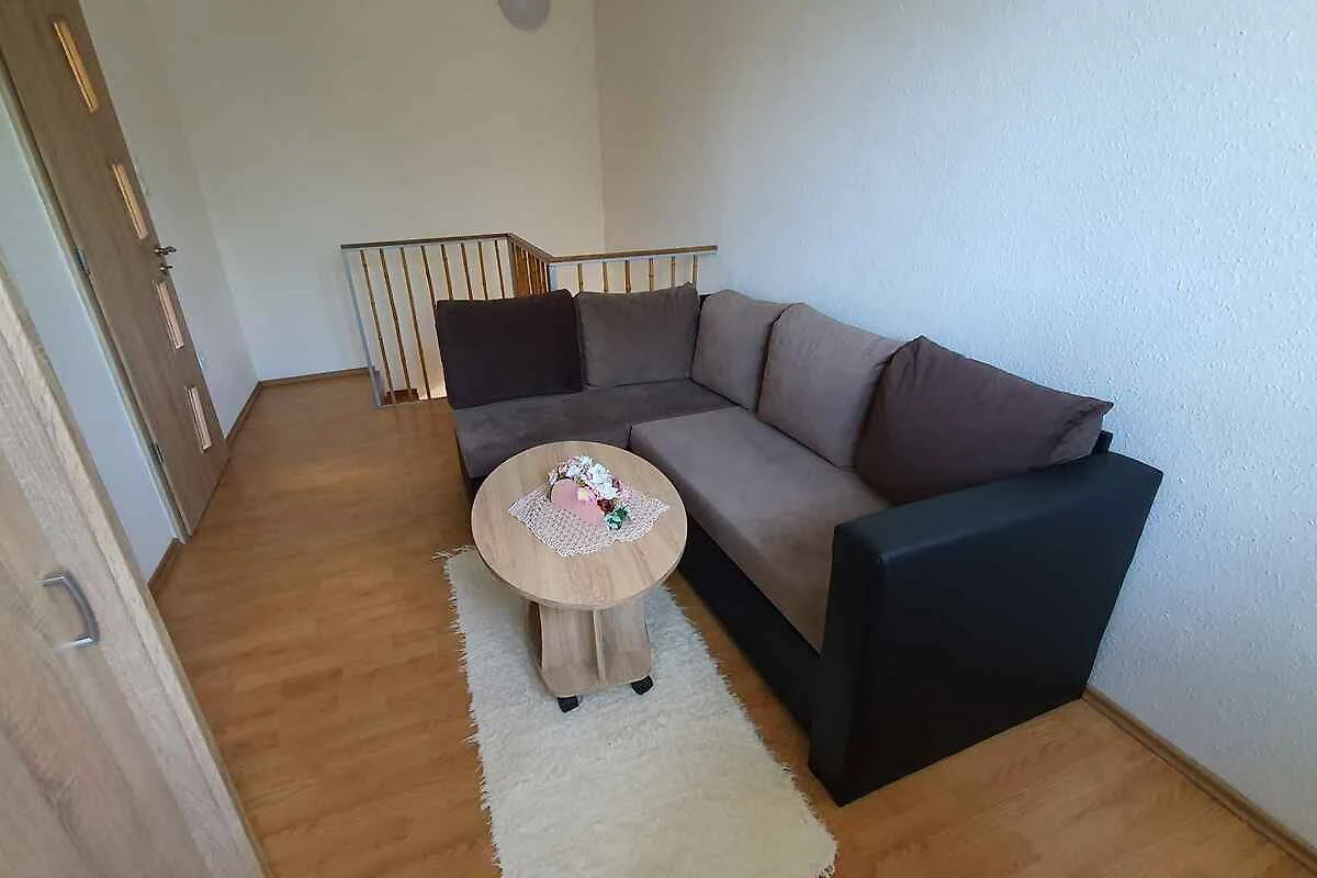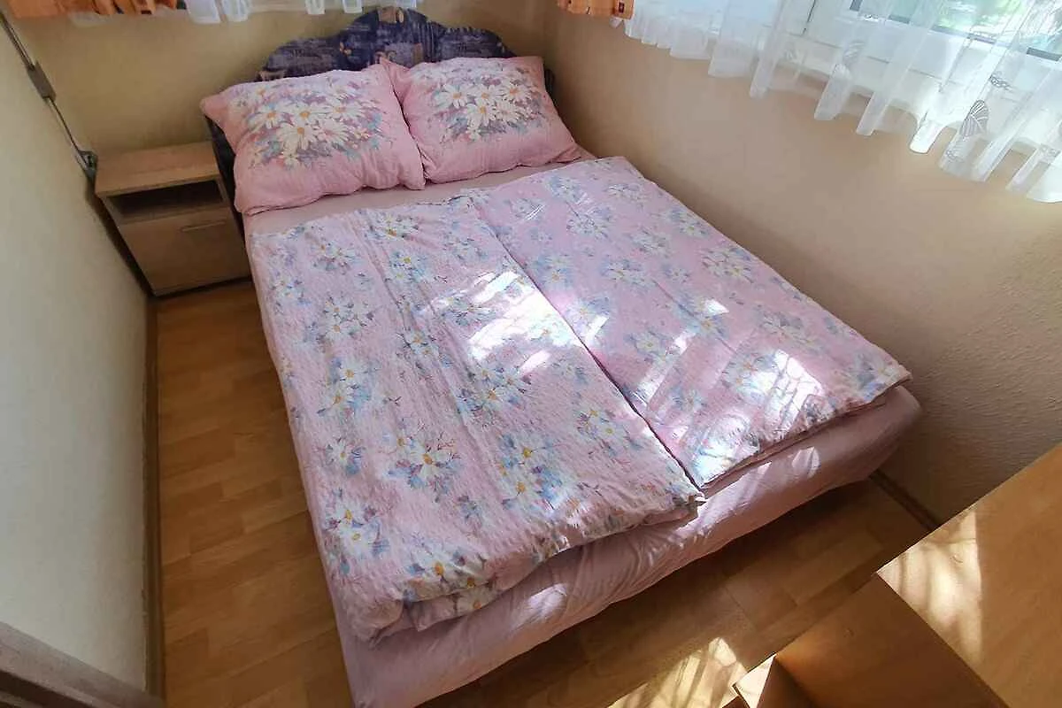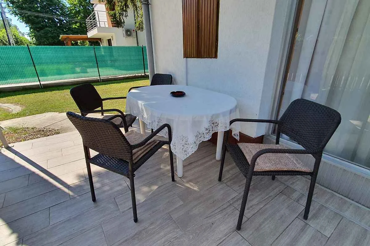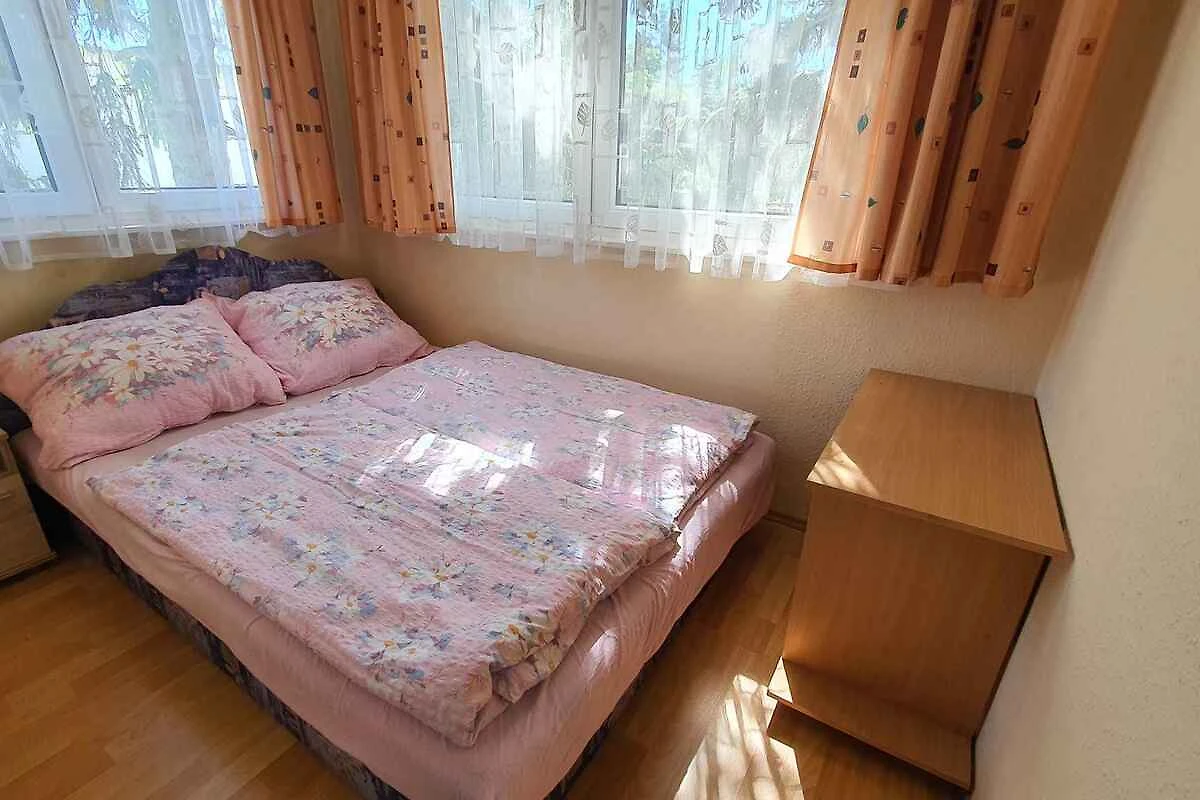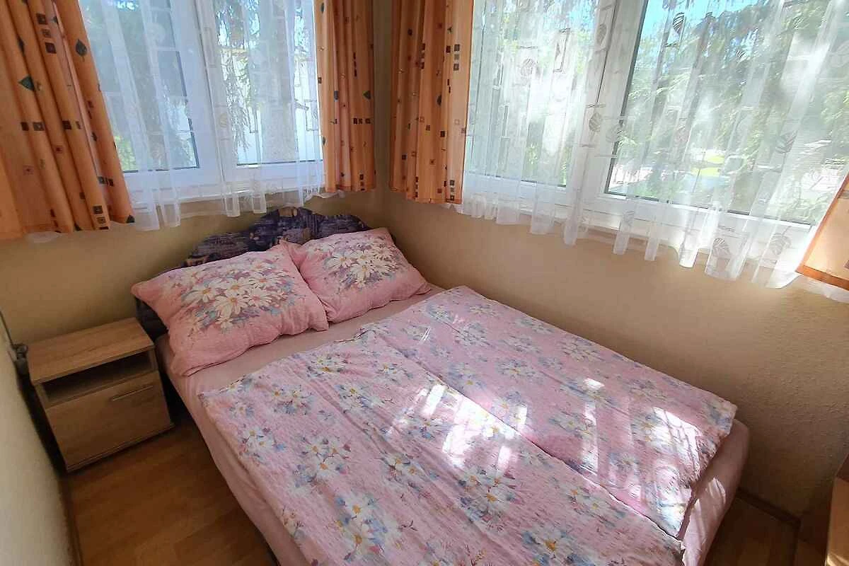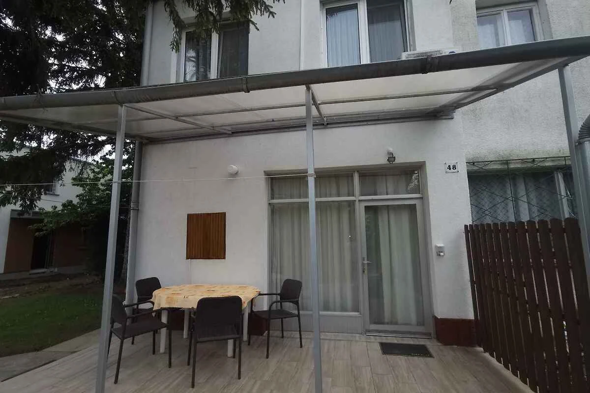 Siófok. Die Ferienwohnung befindet sich auf einem 50 qm grossen Gartengrundstück mit Wiese, Sträuchern und Bäumen. Der Vermieter wohnt nicht im Haus oder auf dem Grundstück. Parkplatz (für 2 Pkws) auf dem Grundstück.