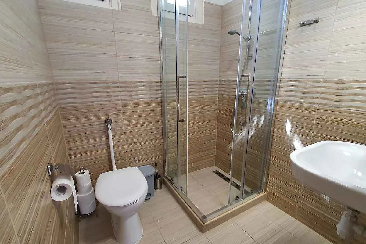Erdgeschoss: Küche mit Essecke, Gasherd, Kühlschrank, Mikrowelle und Kaffeemaschine. Bad mit Dusche und 1 Waschbecken. Separates WC mit WC.