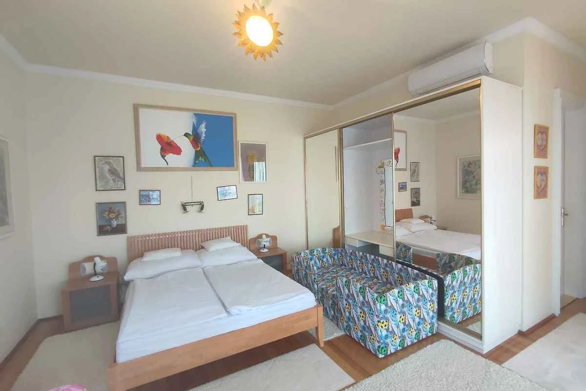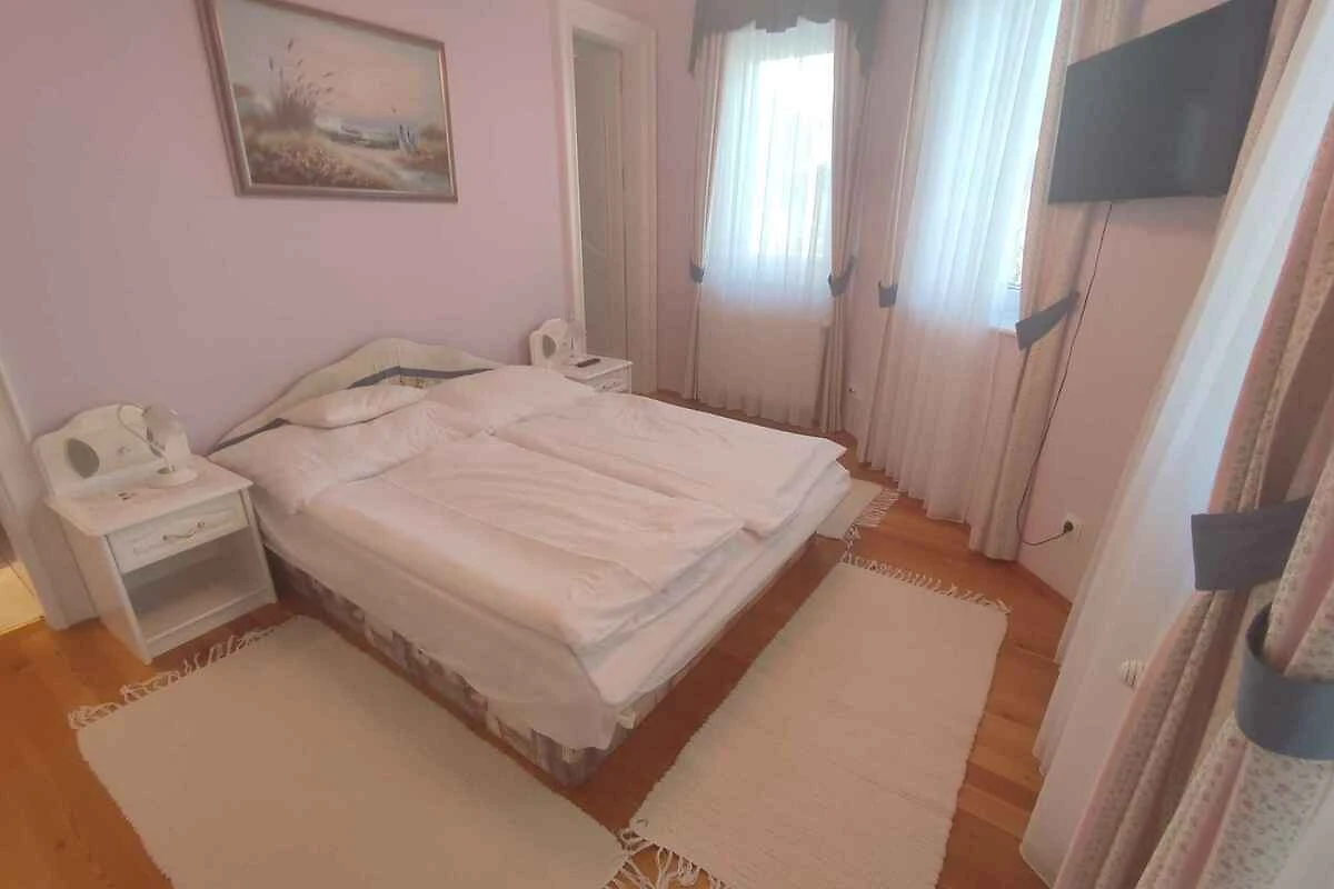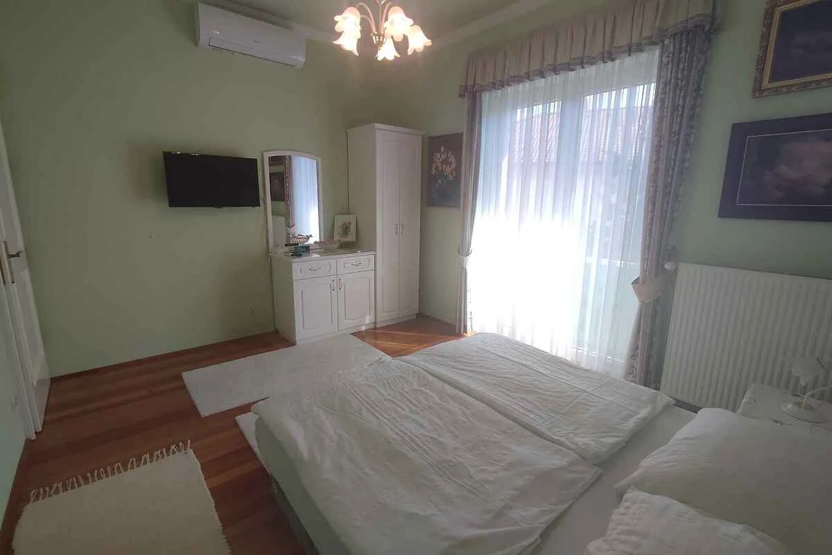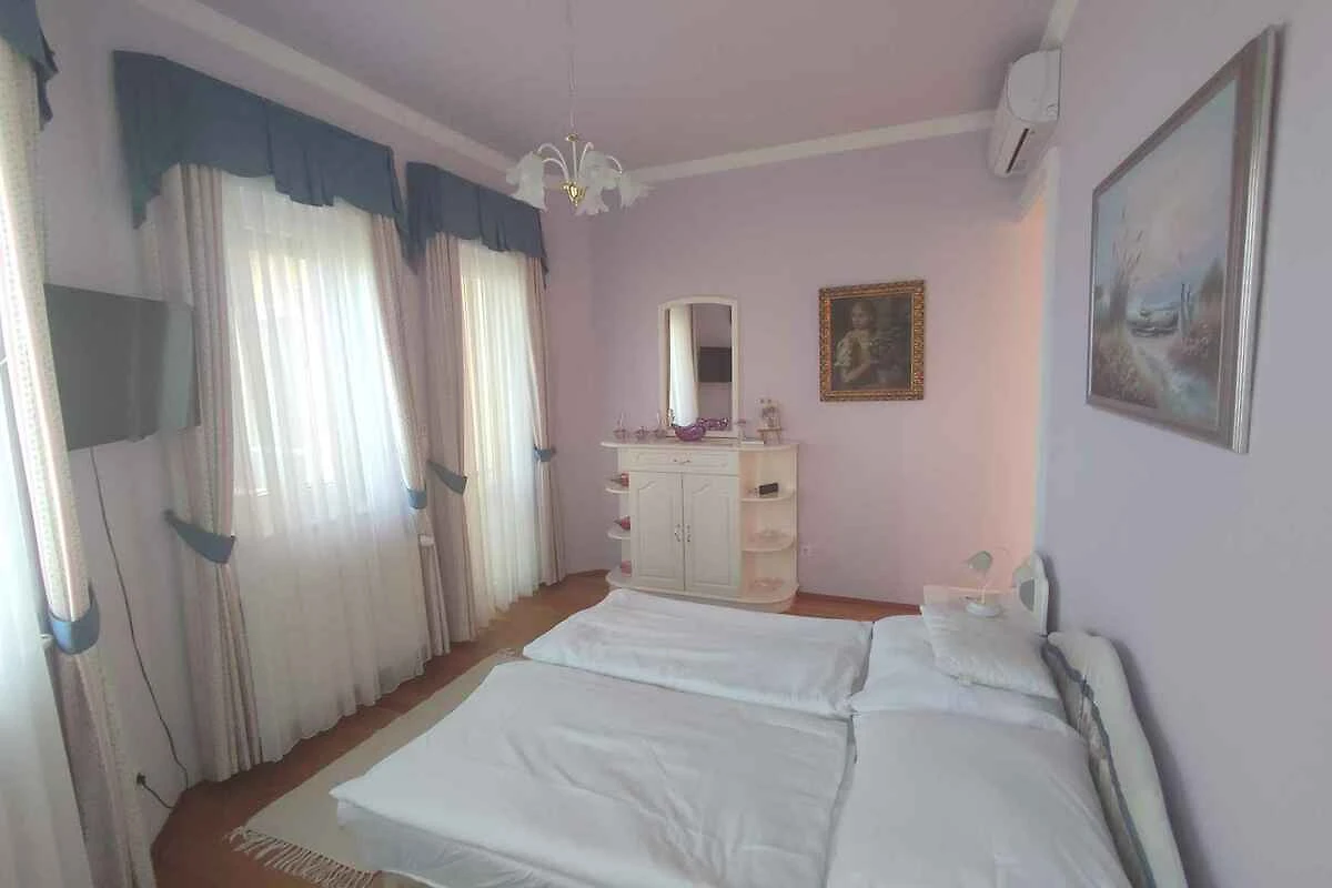 Siófok. Das Ferienzimmer befindet sich auf einem 1000 qm grossen, geschlossenen Gartengrundstück mit Wiese, Blumen, Sträuchern und Bäumen, von einem Zaun begrenzt. Der Vermieter wohnt ständig im Haus.