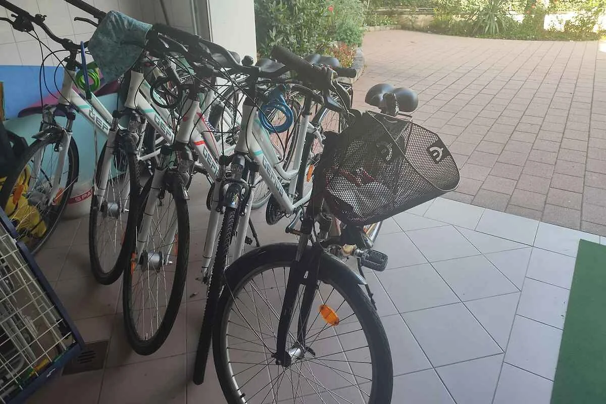2 Fahrräder, Tischtennis, Tischfussball und Darts.